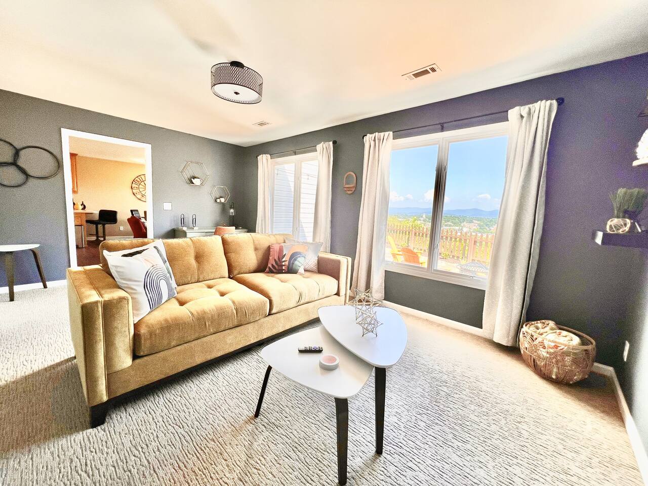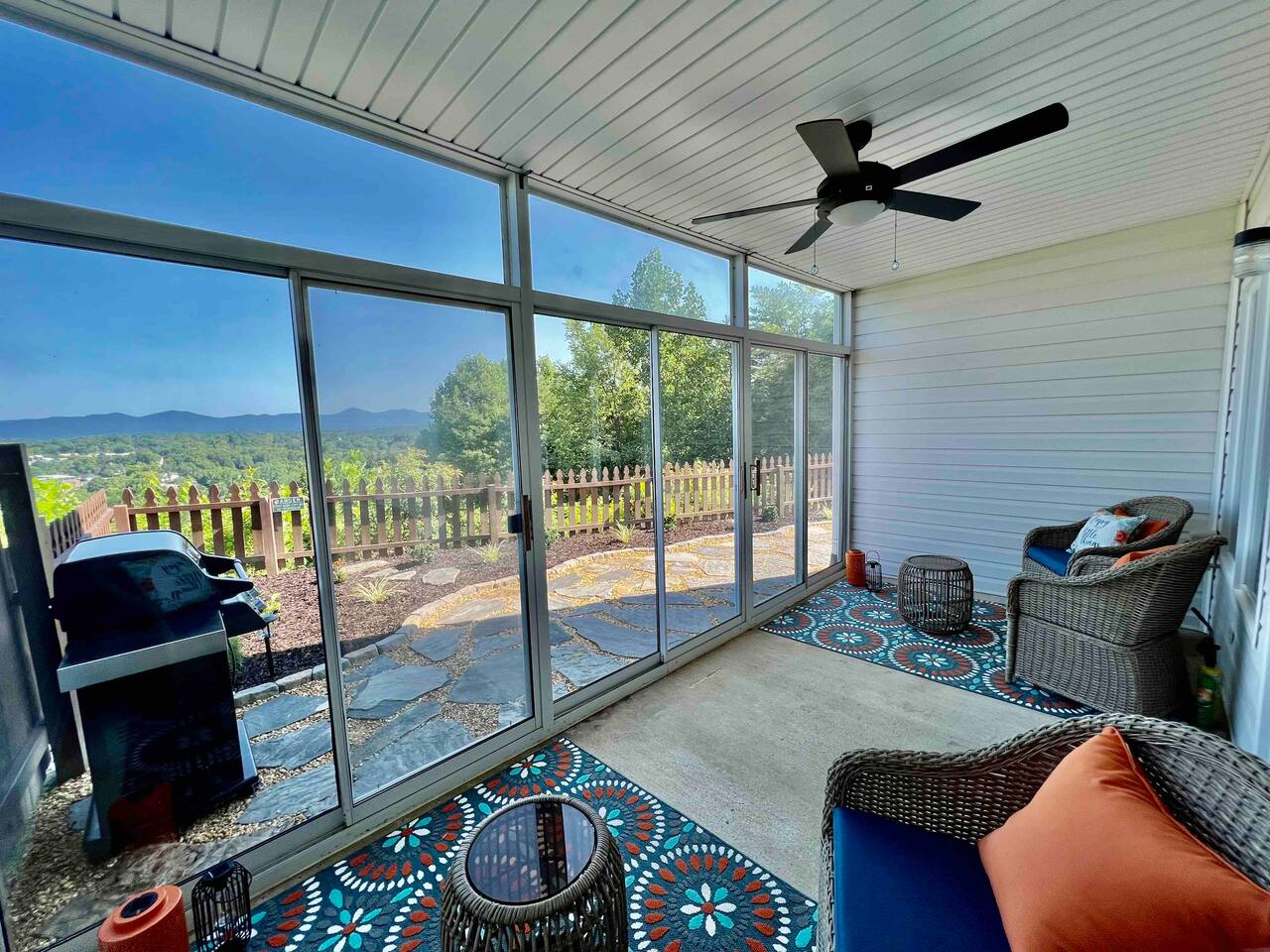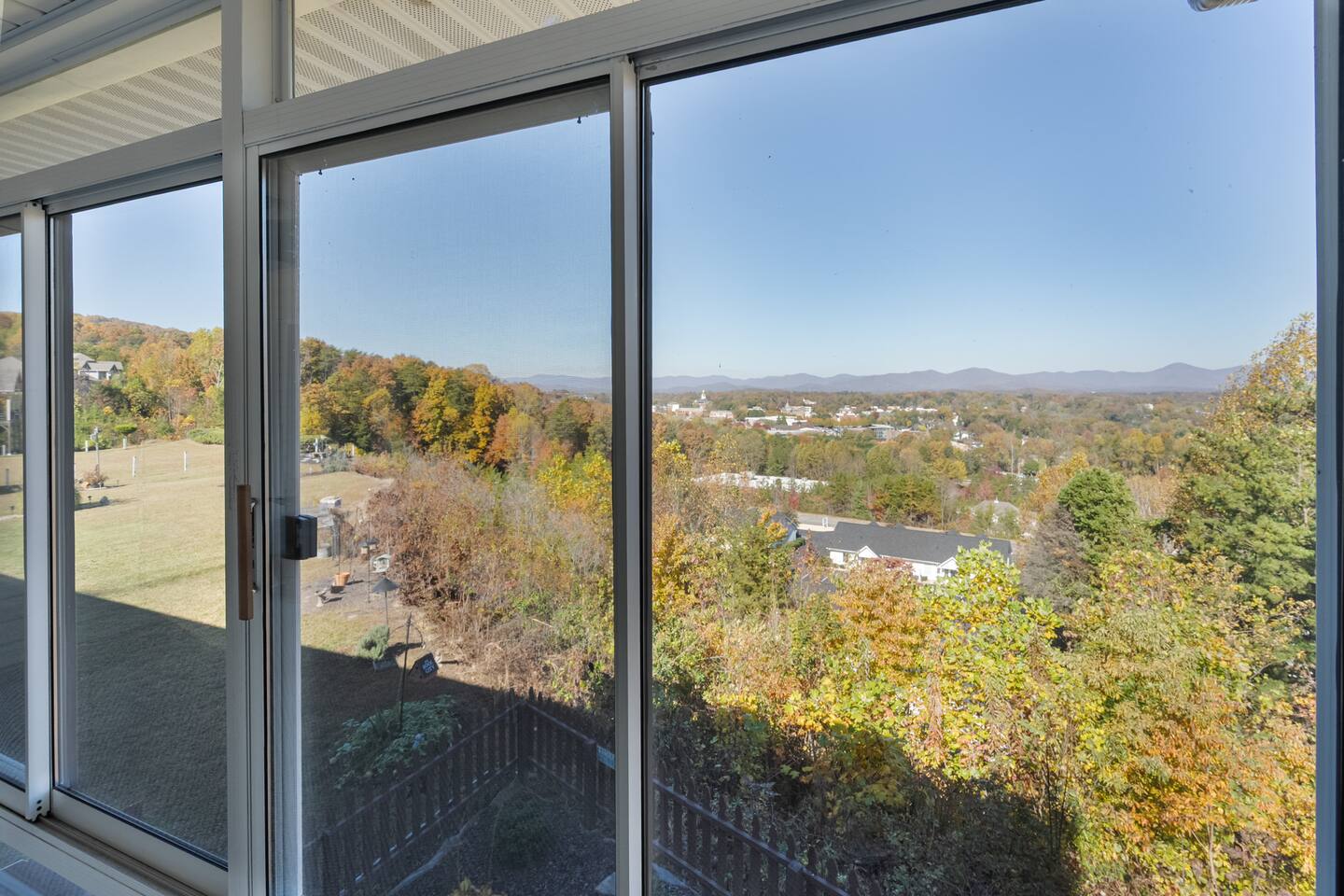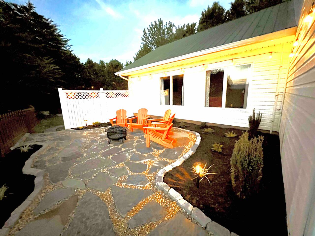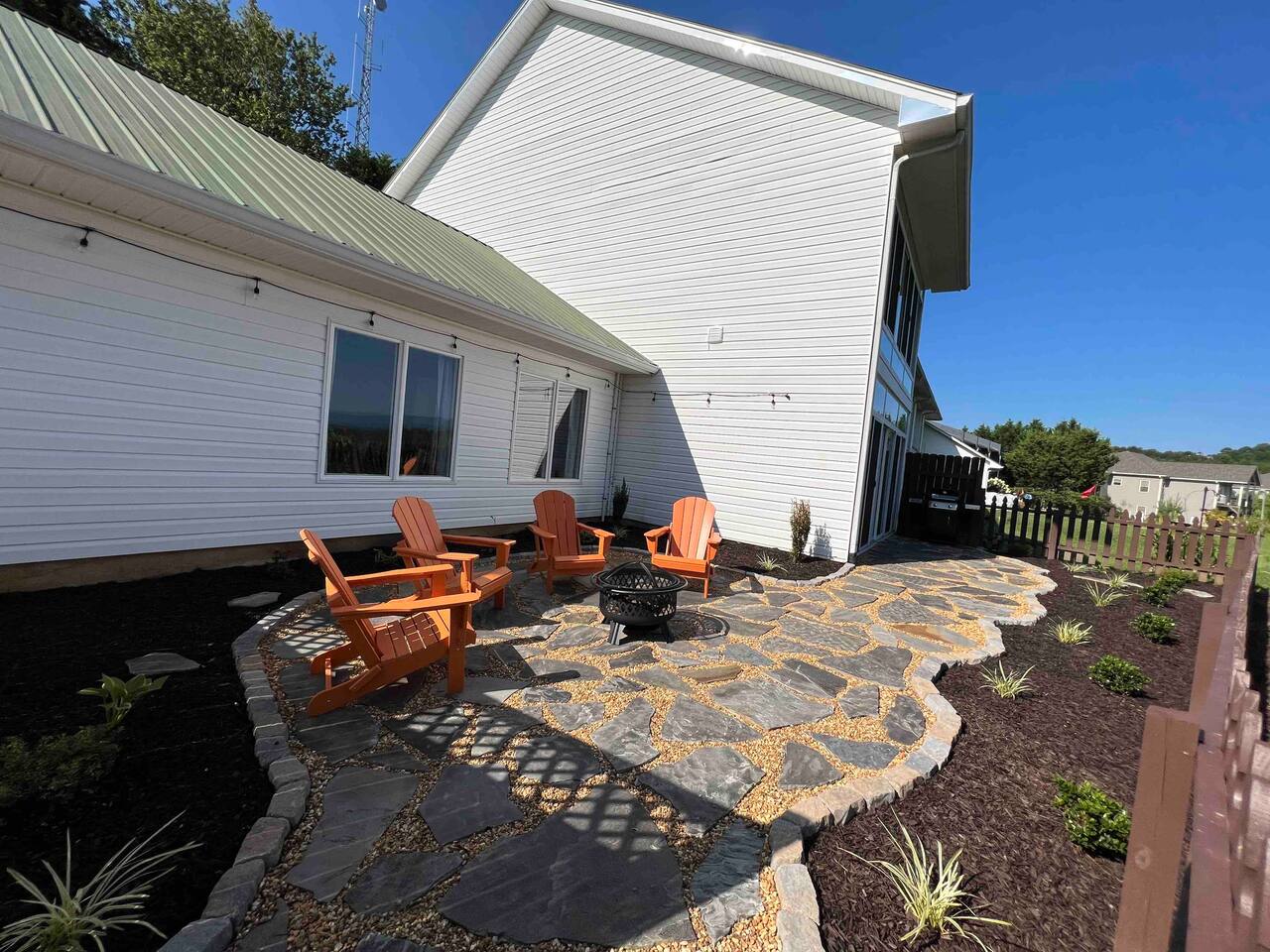 The townhouse is an end unit so you have a private parking, entrance and back yard. The backyard has a gas grill and seating around the firepit with an amazing view!