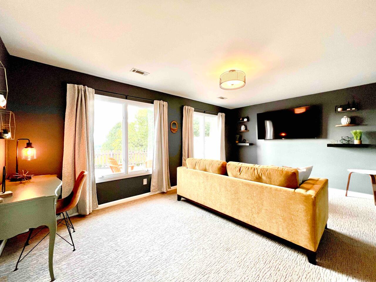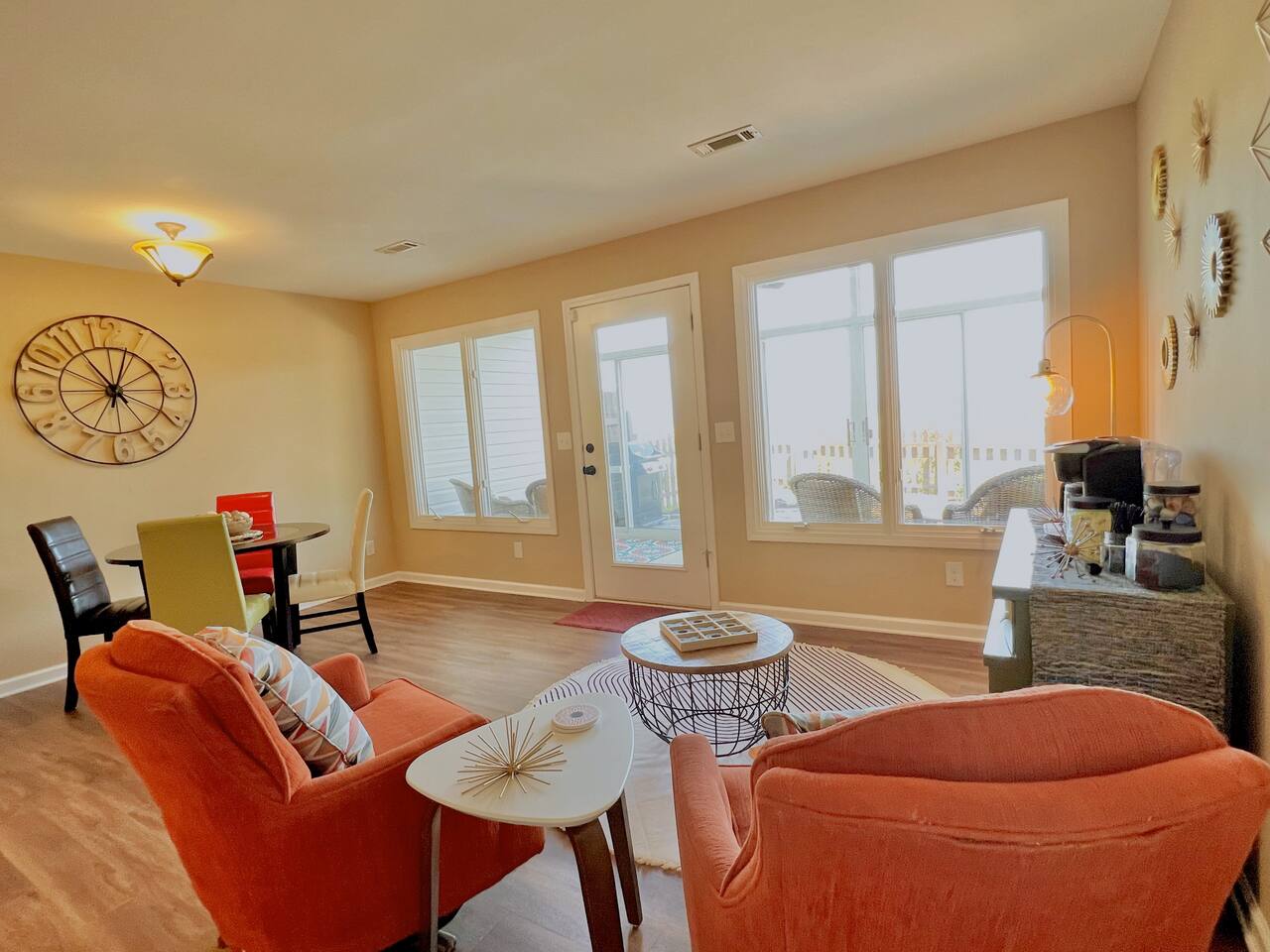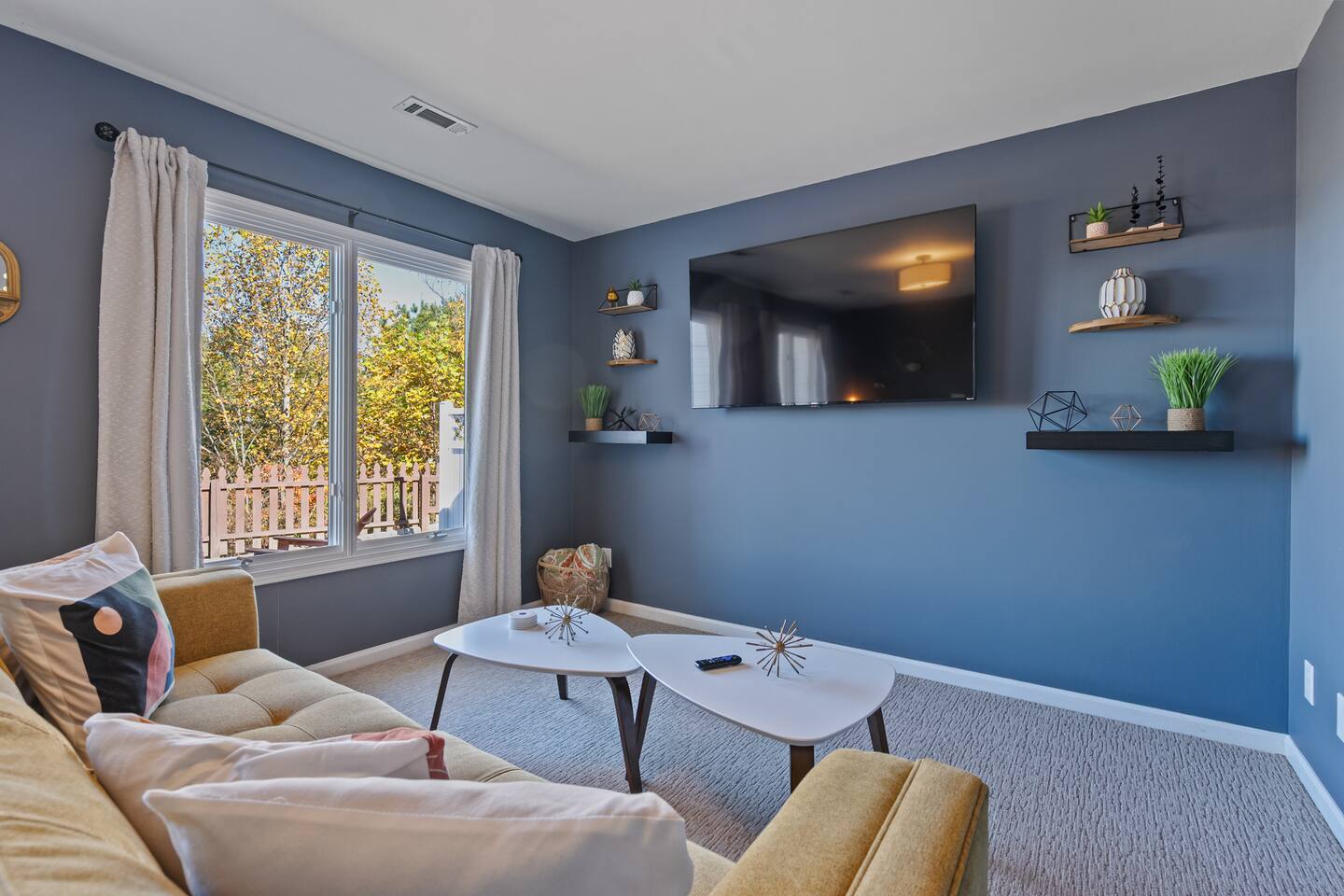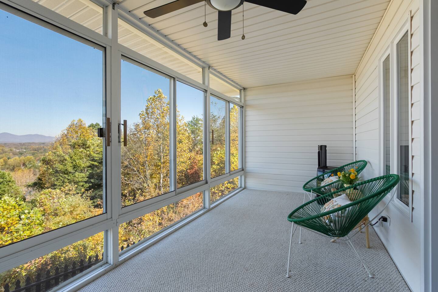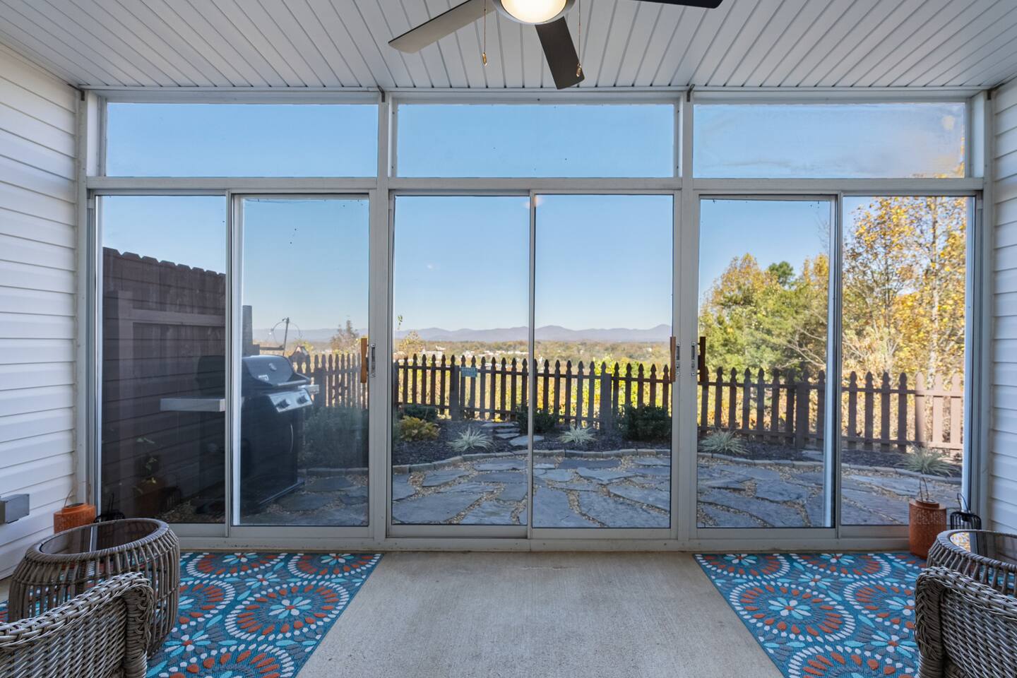 The townhouse is an end unit so you have a private parking, entrance and back yard. The backyard has a gas grill and seating around the firepit with an amazing view!