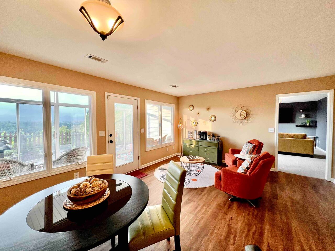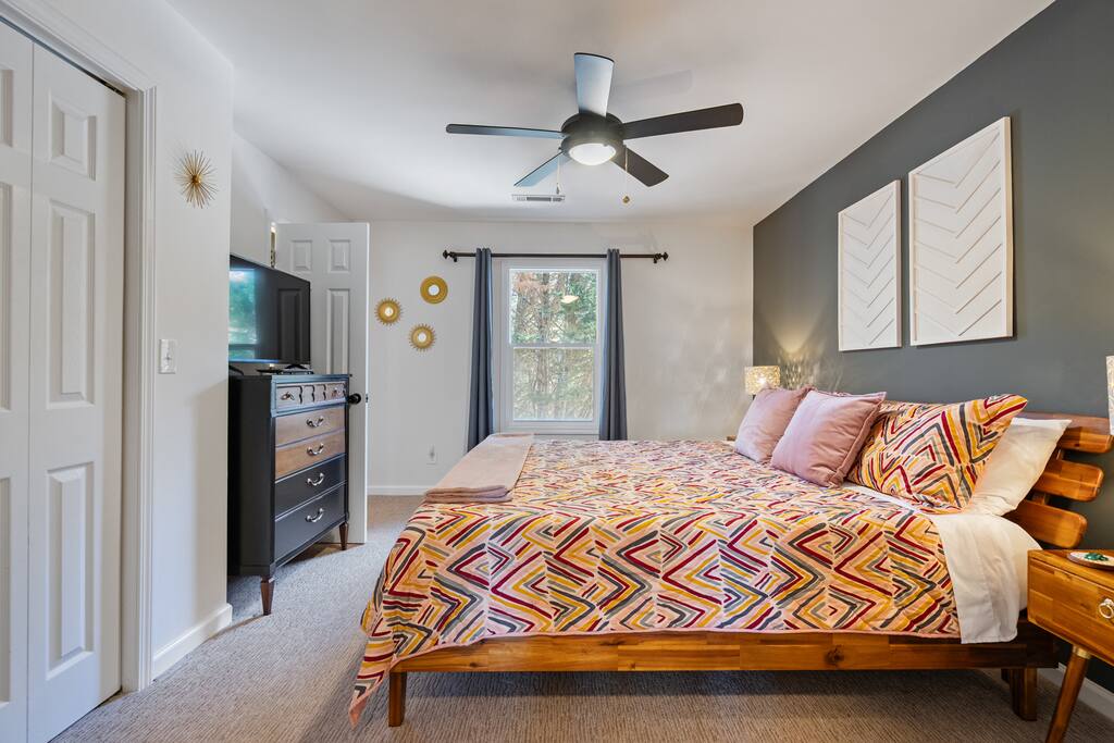 The fully stocked kitchen has what you need to cook your favorite meals. The dinning room has seating for 4 at the table and another two at the counter bar. The family room has an amazing view out the large windows and 65" TV. A stocked coffee bar is available all day with its own sitting area that has an amazing view! So many things to do and see in the area, here are a few. Wineries from Findley Ridge Accent Cellars 5 min, 2.3 miles Etowah Meadery and Brewery 7 min, 3.7 miles Cavender Creek Vineyard 8 min, 3.7 miles Wolf Mountain Vineyard 12 min, 6.1 miles Kaya Vineyard 18 min, 10.9 miles Montaluce Winery 15 min, 8.3 miles Three Sisters Vineyard 19 min, 10.9 miles Frogtown Cellars 20 min, 11.4 miles The Cottage Vineyard 23 min, 14.3 miles Yonah Mountain Vineyard 35 min, 22.7 miles Venues from Findley Ridge Dahlonega Market Place 4 min, 1.2 miles Blue Mountain Vineyards 8 min, 3.5 miles Cavender Castle 8 min, 4.6 miles Juliette Chapel 9 min, 5.2 miles The Oar House 9 min, 4.8 miles White Oaks Vineyard 14 min, 7.3 miles R-Ranch 16 min, 9.3 miles The Ruins at Kellum Valley 27 min, 17.6 miles Neverland Farms 29 min, 15.7 miles Hikes from Findley Ridge Lake Zwerner Trail (3.2 mile loop) 9 min, 5.5 miles Preacher’s Rock (2.0 miles out&back) 14 min, 7.2 miles Dockery Lake Loop (0.6 mile loop) 18 min, 7.2 miles Desoto Falls Trail (1.9 miles out&back) 19 min, 12 miles Blood Mountain Byron Reece Trailhead (4.4 mile out&back) 24 min, 15.4 miles Mount Yonah (4.1 miles out&back) 32 min, 21 miles Raven Cliffs Falls (4.9 miles out&back) 33 min, 23 miles
