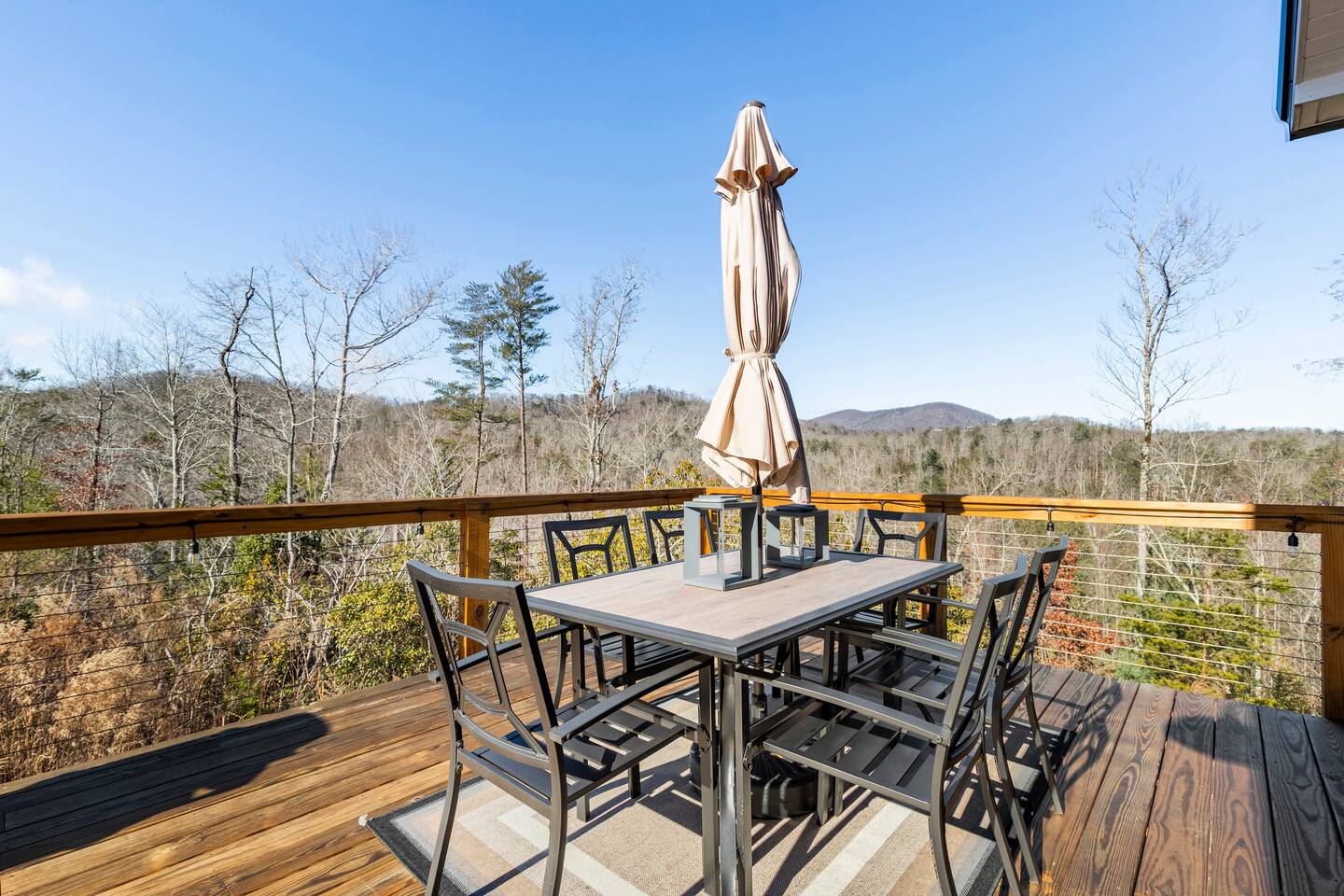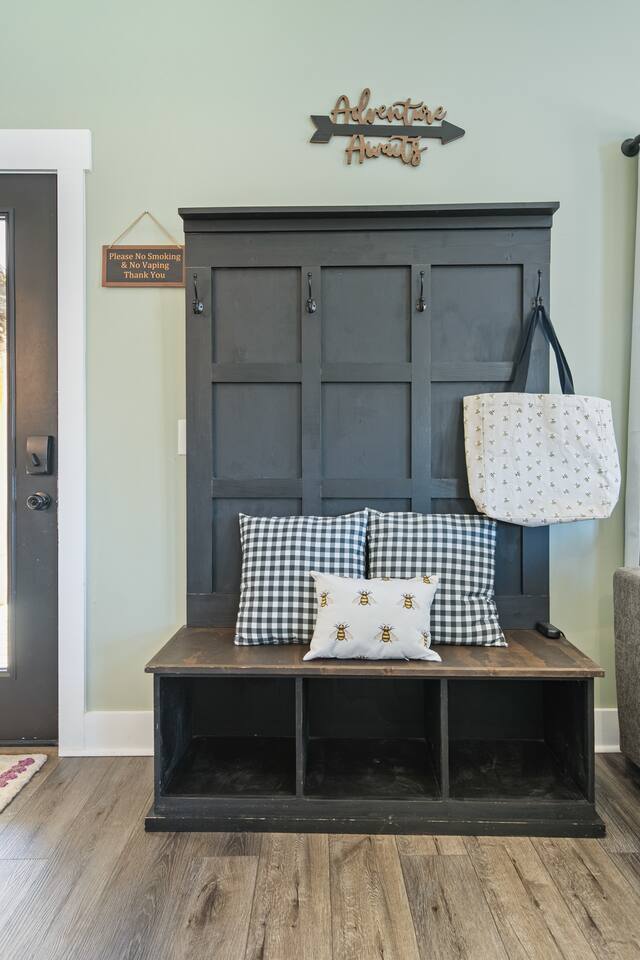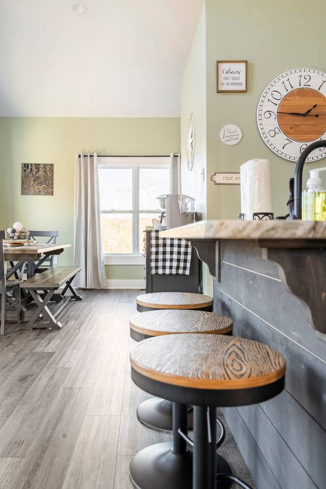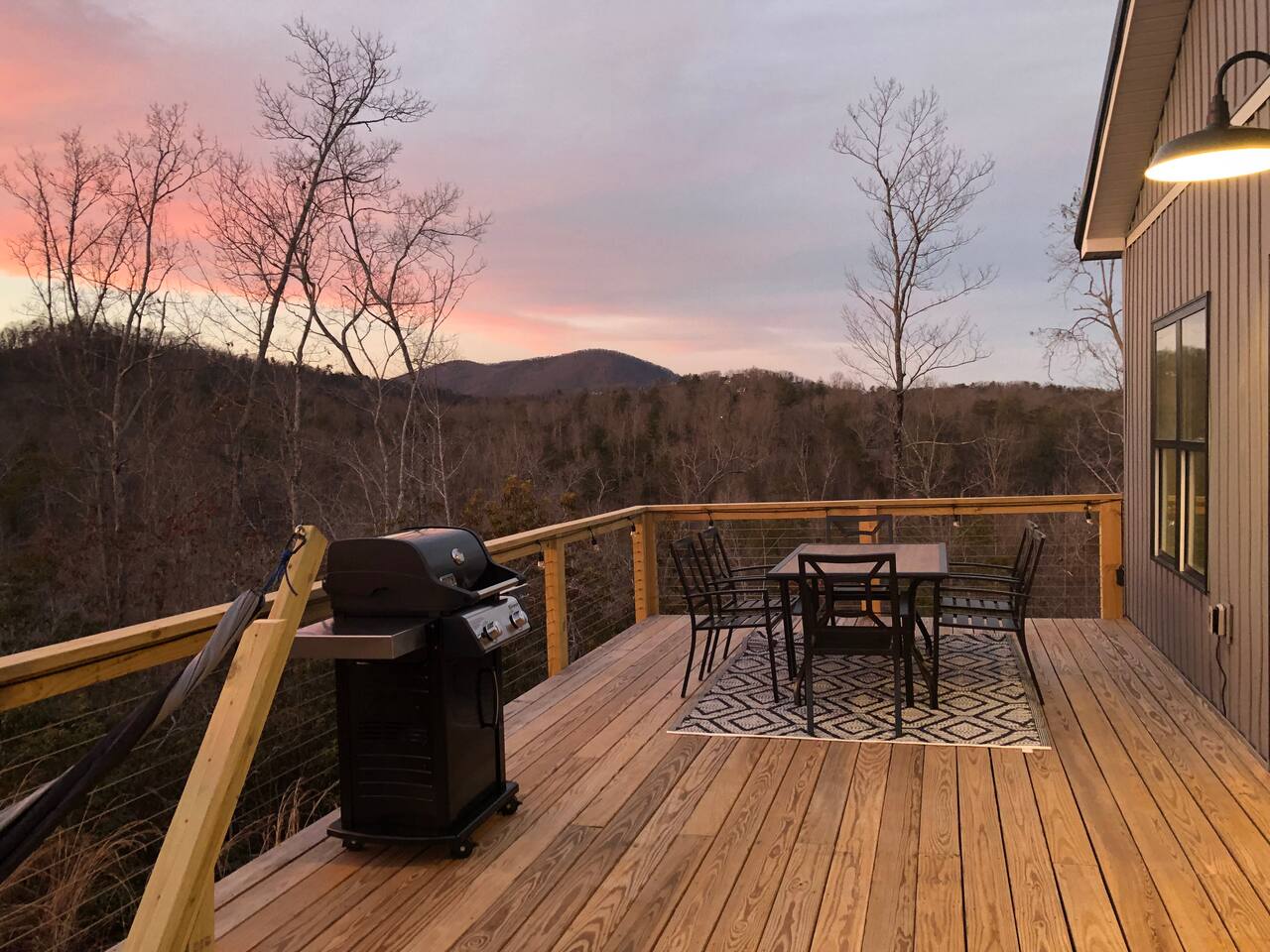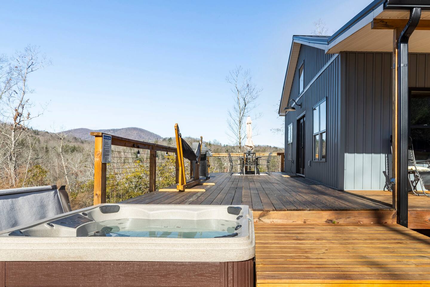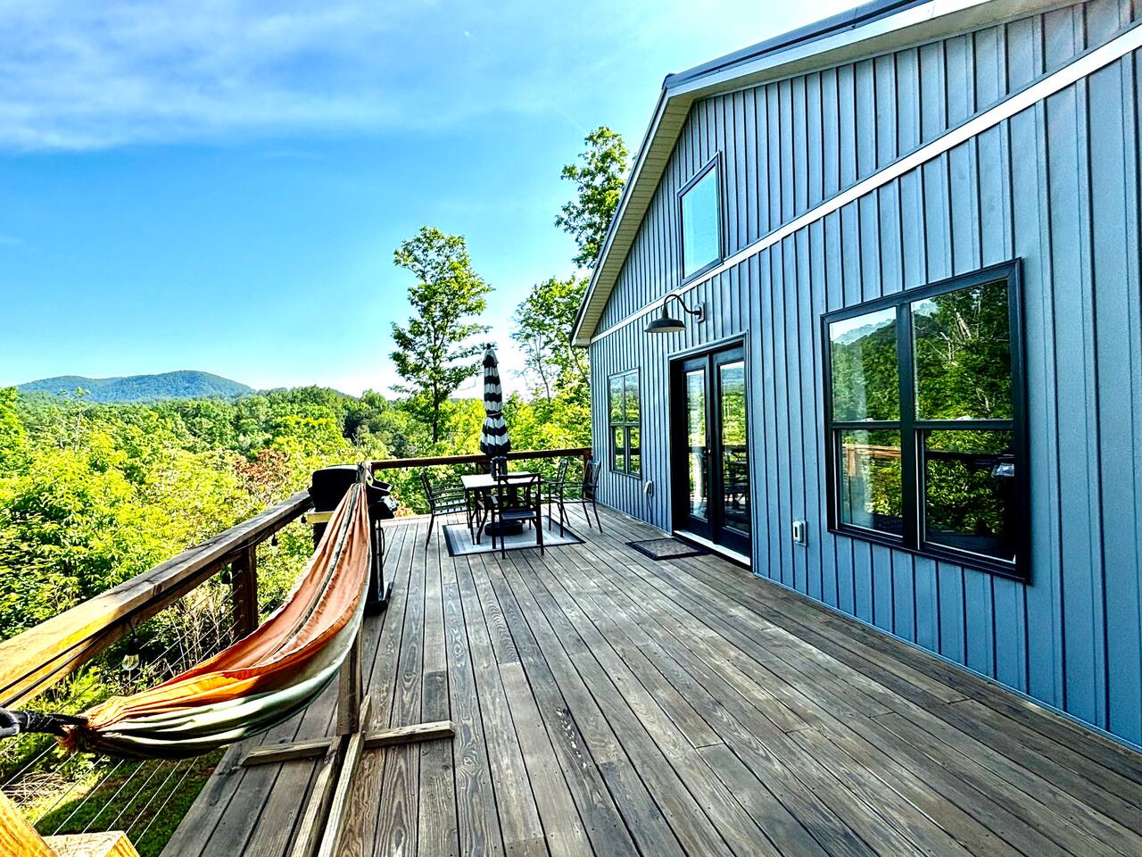☆☆ HIGHLIGHTS ☆☆ ✹ 2 bedrooms; 2 king beds, 1 sofa bed ✹ 2 full bathrooms; complimentary toiletries + bathrobes ✹ Open floor plan ✹ Full kitchen w/ modern appliances ✹ Coffee bar ✹ Comfy living room w/ lots of windows ✹ Accessible features - large doors, no stairs, accessible parking ✹Smart TV’s in living room and bedrooms ✹ Free WiFi ✹ Washer + dryer ✹ View of Cedar Mountain ✹ Covered porch w/ rocking chairs + zero gravity chairs ✹ Back deck w/ BBQ + outdoor dining ✹ Hot tub ✹ Hammocks ✹ Outdoor fire pit (firewood provided) ✹ Free parking ✹ 1-mile loop trail onsite ✹ Secluded location yet close to local wineries and historic Dahlonega Eager to Read More? Here Are A Few Kind Words From Our Previous Guests: “One of our top 10 AirBnBs ever! Chad is super helpful, and you can tell they’ve put a lot of work into this cabin! It has a gorgeous view of the North GA mountains, and it’s even better from the hot tub! We’ll be staying here every time we come back!” - Drew “Beautiful home, tucked away in a peaceful yet scenic location. The home was perfect in every way. From decor details, to an extra football to toss around. Would highly recommend to anyone wanting a home away from home. Chad was a fantastic host, responsive and detailed about activities to do outside the home. Look forward to our next visit again, soon!” - Hannah “We stayed at Chad’s mountain cabin in Dahlonega this past weekend. Chad has thought of everything! We loved having a fully stocked kitchen so we could cook breakfast and enjoy the beautiful Mountain View. (The wild blackberries, wild azaleas and mountain laurel were blooming) An extra convenience was having a washer and dryer. Can’t wait to visit again!” - Sheila ★★ BEDROOMS ★★ This private getaway features two tastefully decorated bedrooms, so you can enjoy a quiet place to relax after a day of outdoor activities. There is ample storage space to unpack your belongings and feel at home. ✹ Primary bedroom: King-sized bed, Smart Tv, dresser, closet, large window ✹ Second bedroom: King-sized bed, Smart TV, dresser, charging ports, large window with a view of Cedar Mountain, ensuite bathroom ✹ Living room: sleeper sofa for additional guests ✔ Silk bed linens ✔ Extra pillows and blankets ✔ Bathrobes ✔ Hangers ✔ Room-darkening shades ★★ BATHROOMS ★★ You’ll find two full bathrooms, providing enough space for your whole family to freshen up. Each bathroom features a single vanity and a shower/tub combination so you can choose between a relaxing soak or a refreshing shower. ✔ Fresh towels ✔ Shampoo, conditioner, and body wash ✔ Washer and dryer ✔ Iron ★★ KITCHEN & DINING ★★ Whip up delicious meals for the whole family in this fully equipped space. Boasting stainless steel appliances, a kitchen island with seating for 3, and ample cookware and dishware, you’ll love the flexibility and convenience this space provides. When you’re ready to eat, serve your meals on the charming farmhouse-style dining table or take a seat at the kitchen counter. ✔ Full-size fridge and freezer ✔ Stainless appliances ✔ Oven, stove, dishwasher, microwave ✔ Coffee bar with a Keurig coffee machine ✔ Kitchen island for 3 ✔ Large dining table ★★ LIVING ROOM ★★ The bright living room is the perfect place to relax after a long day. Sink into the plush sofa and watch a show on the Smart TV or enjoy a game night with your whole group. You’ll love the cozy cabin decor and large windows which provide plenty of natural light and views of the wooded lot throughout the day. ✔ Comfy sofa bed and chair ✔ Smart TV ✔ Free wifi ✔ Large windows ✔ Board games ✔ Air conditioning and heating ★★ OUTDOOR SPACE ★★ Step out onto the back deck and take in the stunning views of Cedar Mountain while soaking your muscles in the hot tub. This is a great place to relax while the grill master of your group makes something delicious on the BBQ. There is plenty of outdoor seating to take advantage of while sipping a coffee and enjoying the gorgeous views. ✔ Back deck with BBQ, dining table, hot tub, hammock ✔ Cedar Mountain views ✔ Porch with rocking chairs and zero gravity chairs ✔ Fire pit with firewood provided ★★ ACTIVITIES/ATTRACTIONS ★★ There are plenty of enjoyable activities to experience in the Dahlonega area, and our cabin provides an excellent starting point for your exploration. Check out some of the exhilarating options available to you: Tourist Attractions ✔ Dahlonega Gold Museum State Historic Site (12 mins, 7.1 miles) ✔ Consolidated Gold Mine (12 mins, 6.7 miles) ✔ Historic town of Dahlonega (12mins, 7.1 miles) Wineries and Vineyards ✔ Wolf Mountain Vineyard (8 min, 3.4 miles) ✔ Etowah Meadery and Brewery (7 min, 4.2 miles) ✔ Cavender Creek Vineyard (11 min, 6.5 miles) Venues ✔ White Oaks Vineyard (6 min, 2.8 miles) ✔ Cavender Castle (9 min, 4.6 miles) ✔ R-Ranch (7 min, 3.2 miles) Trails for Hikers ✔ Lake Zwerner Trail - 3.2 mile loop (9 min, 5.5 miles) ✔ Preacher’s Rock - 2.0 miles out&back (14 min, 7.2 miles) ✔ Dockery Lake Loop - 0.6 mile loop (14 min, 6.0 miles) Check out our guidebook or ask us for more activities/attractions within your reach when you book with us! ★ ★ ★ Book Today & Let Us Take Care Of You In Dahlonega! ★ ★ ★ Guest Access: ✹ GENERAL: Guests can enjoy private access to the entire cabin. ✹ COMPLIMENTARY ESSENTIALS: We provide guests with shampoo, conditioner, body wash, coffee pods, and firewood. ✹ ACCESSIBILITY: This cabin has no steps, an accessible parking spot, and features doorways that are wider than 32 inches. ✹ PARKING: Free parking is available on-site. ✹ FAMILY: Traveling with little ones? We’ve got you covered with a few supplies including a Pack ’n play/travel crib and board games, so your little ones never get bored. ✹ NO PETS: We have a no-pet policy. Don