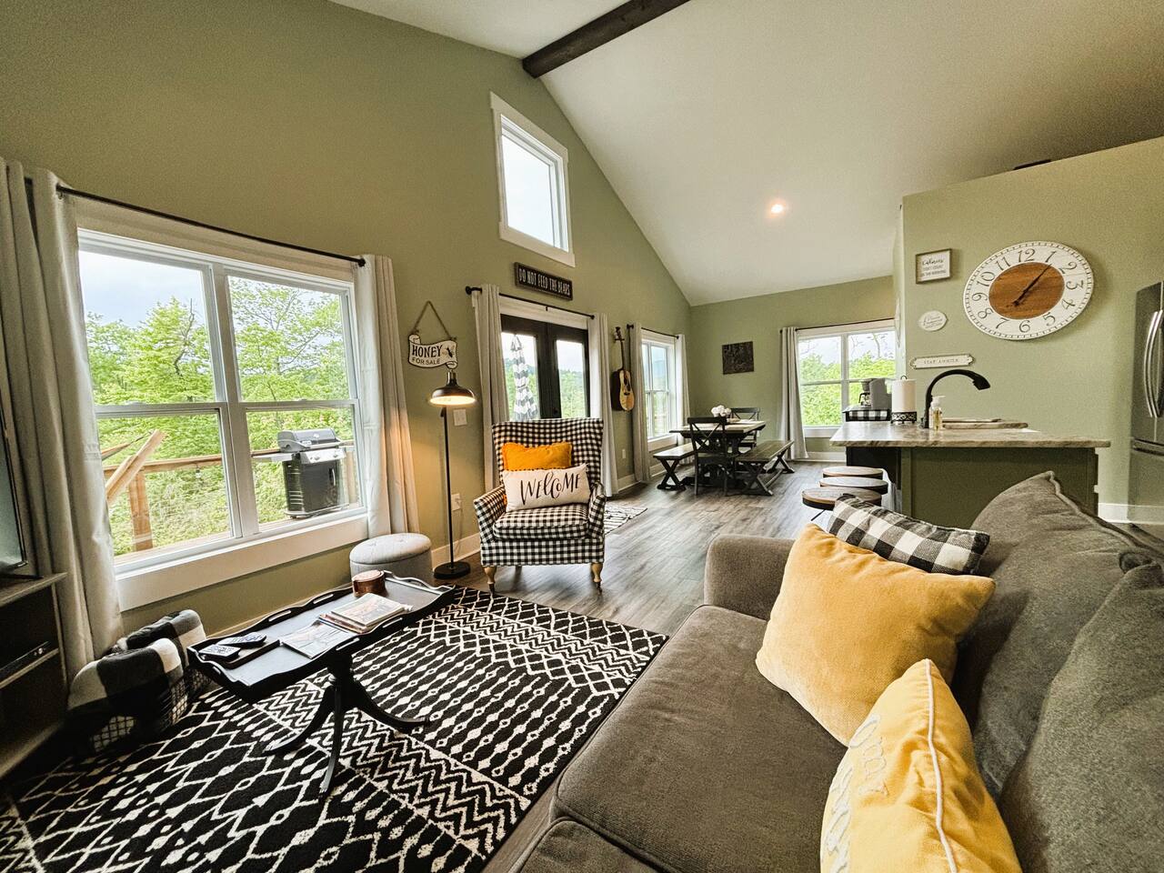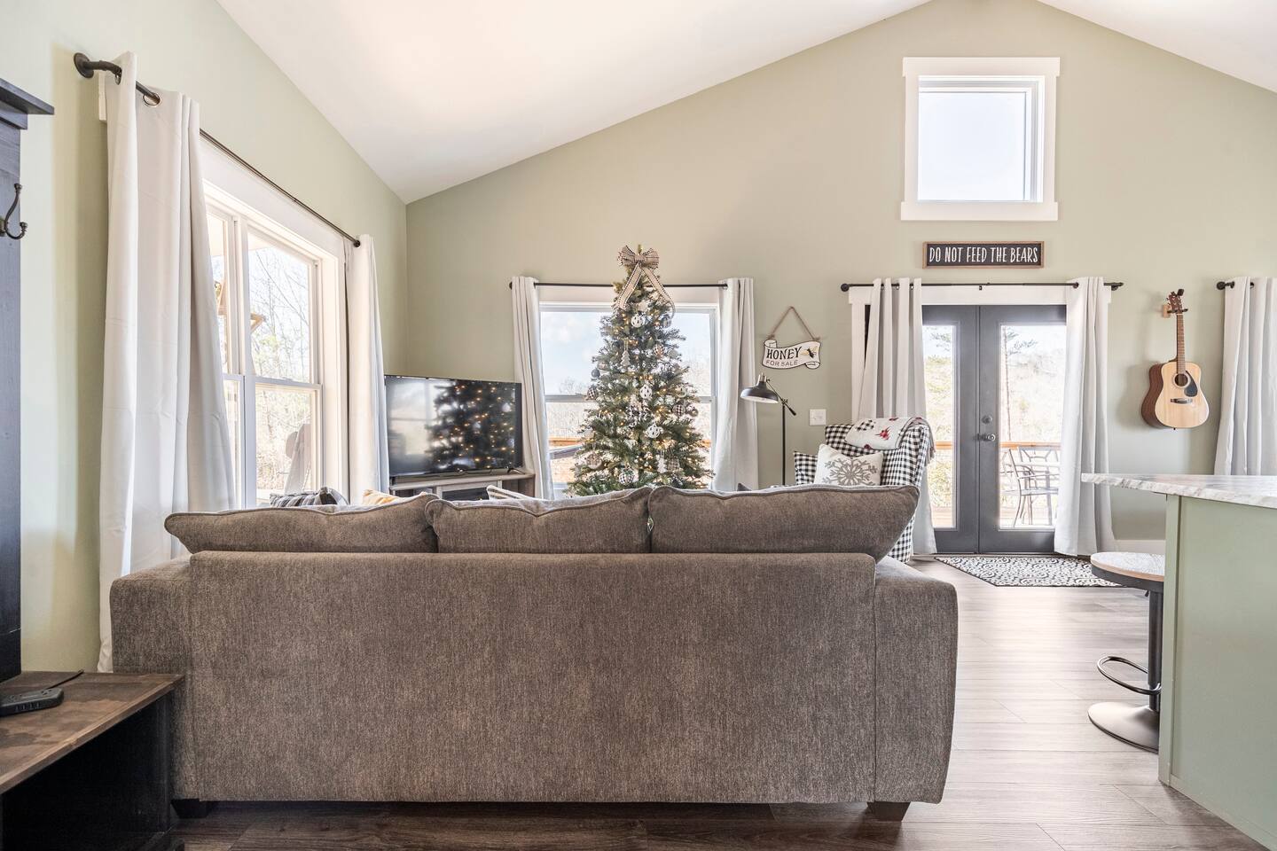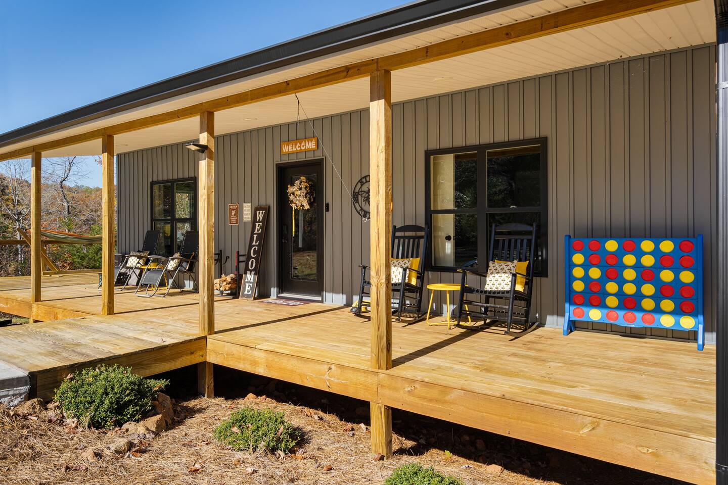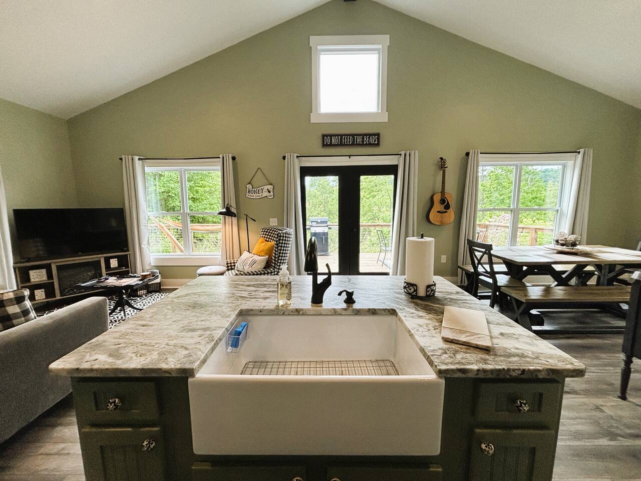 ☆☆ HIGHLIGHTS ☆☆ ✹ 2 bedrooms; 2 king beds, 1 sofa bed ✹ 2 full bathrooms; complimentary toiletries + bathrobes ✹ Open floor plan ✹ Full kitchen w/ modern appliances ✹ Coffee bar ✹ Comfy living room w/ lots of windows ✹ Accessible features - large doors, no stairs, accessible parking ✹Smart TV’s in living room and bedrooms ✹ Free WiFi ✹ Washer + dryer ✹ View of Cedar Mountain ✹ Covered porch w/ rocking chairs + zero gravity chairs ✹ Back deck w/ BBQ + outdoor dining ✹ Hot tub ✹ Hammocks ✹ Outdoor fire pit (firewood provided) ✹ Free parking ✹ 1-mile loop trail onsite ✹ Secluded location yet close to local wineries and historic Dahlonega Eager to Read More? Here Are A Few Kind Words From Our Previous Guests: “One of our top 10 AirBnBs ever! Chad is super helpful, and you can tell they’ve put a lot of work into this cabin! It has a gorgeous view of the North GA mountains, and it’s even better from the hot tub! We’ll be staying here every time we come back!” - Drew “Beautiful home, tucked away in a peaceful yet scenic location. The home was perfect in every way. From decor details, to an extra football to toss around. Would highly recommend to anyone wanting a home away from home. Chad was a fantastic host, responsive and detailed about activities to do outside the home. Look forward to our next visit again, soon!” - Hannah “We stayed at Chad’s mountain cabin in Dahlonega this past weekend. Chad has thought of everything! We loved having a fully stocked kitchen so we could cook breakfast and enjoy the beautiful Mountain View. (The wild blackberries, wild azaleas and mountain laurel were blooming) An extra convenience was having a washer and dryer. Can’t wait to visit again!” - Sheila ★★ BEDROOMS ★★ This private getaway features two tastefully decorated bedrooms, so you can enjoy a quiet place to relax after a day of outdoor activities. There is ample storage space to unpack your belongings and feel at home. ✹ Primary bedroom: King-sized bed, Smart Tv, dresser, closet, large window ✹ Second bedroom: King-sized bed, Smart TV, dresser, charging ports, large window with a view of Cedar Mountain, ensuite bathroom ✹ Living room: sleeper sofa for additional guests ✔ Silk bed linens ✔ Extra pillows and blankets ✔ Bathrobes ✔ Hangers ✔ Room-darkening shades ★★ BATHROOMS ★★ You’ll find two full bathrooms, providing enough space for your whole family to freshen up. Each bathroom features a single vanity and a shower/tub combination so you can choose between a relaxing soak or a refreshing shower. ✔ Fresh towels ✔ Shampoo, conditioner, and body wash ✔ Washer and dryer ✔ Iron ★★ KITCHEN & DINING ★★ Whip up delicious meals for the whole family in this fully equipped space. Boasting stainless steel appliances, a kitchen island with seating for 3, and ample cookware and dishware, you’ll love the flexibility and convenience this space provides. When you’re ready to eat, serve your meals on the charming farmhouse-style dining table or take a seat at the kitchen counter. ✔ Full-size fridge and freezer ✔ Stainless appliances ✔ Oven, stove, dishwasher, microwave ✔ Coffee bar with a Keurig coffee machine ✔ Kitchen island for 3 ✔ Large dining table ★★ LIVING ROOM ★★ The bright living room is the perfect place to relax after a long day. Sink into the plush sofa and watch a show on the Smart TV or enjoy a game night with your whole group. You’ll love the cozy cabin decor and large windows which provide plenty of natural light and views of the wooded lot throughout the day. ✔ Comfy sofa bed and chair ✔ Smart TV ✔ Free wifi ✔ Large windows ✔ Board games ✔ Air conditioning and heating ★★ OUTDOOR SPACE ★★ Step out onto the back deck and take in the stunning views of Cedar Mountain while soaking your muscles in the hot tub. This is a great place to relax while the grill master of your group makes something delicious on the BBQ. There is plenty of outdoor seating to take advantage of while sipping a coffee and enjoying the gorgeous views. ✔ Back deck with BBQ, dining table, hot tub, hammock ✔ Cedar Mountain views ✔ Porch with rocking chairs and zero gravity chairs ✔ Fire pit with firewood provided ★★ ACTIVITIES/ATTRACTIONS ★★ There are plenty of enjoyable activities to experience in the Dahlonega area, and our cabin provides an excellent starting point for your exploration. Check out some of the exhilarating options available to you: Tourist Attractions ✔ Dahlonega Gold Museum State Historic Site (12 mins, 7.1 miles) ✔ Consolidated Gold Mine (12 mins, 6.7 miles) ✔ Historic town of Dahlonega (12mins, 7.1 miles) Wineries and Vineyards ✔ Wolf Mountain Vineyard (8 min, 3.4 miles) ✔ Etowah Meadery and Brewery (7 min, 4.2 miles) ✔ Cavender Creek Vineyard (11 min, 6.5 miles) Venues ✔ White Oaks Vineyard (6 min, 2.8 miles) ✔ Cavender Castle (9 min, 4.6 miles) ✔ R-Ranch (7 min, 3.2 miles) Trails for Hikers ✔ Lake Zwerner Trail - 3.2 mile loop (9 min, 5.5 miles) ✔ Preacher’s Rock - 2.0 miles out&back (14 min, 7.2 miles) ✔ Dockery Lake Loop - 0.6 mile loop (14 min, 6.0 miles) Check out our guidebook or ask us for more activities/attractions within your reach when you book with us! ★ ★ ★ Book Today & Let Us Take Care Of You In Dahlonega! ★ ★ ★ Guest Access: ✹ GENERAL: Guests can enjoy private access to the entire cabin. ✹ COMPLIMENTARY ESSENTIALS: We provide guests with shampoo, conditioner, body wash, coffee pods, and firewood. ✹ ACCESSIBILITY: This cabin has no steps, an accessible parking spot, and features doorways that are wider than 32 inches. ✹ PARKING: Free parking is available on-site. ✹ FAMILY: Traveling with little ones? We’ve got you covered with a few supplies including a Pack ’n play/travel crib and board games, so your little ones never get bored. ✹ NO PETS: We have a no-pet policy. Don