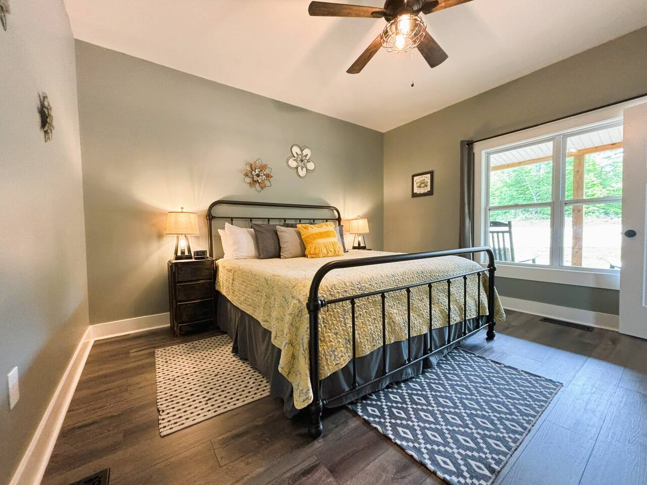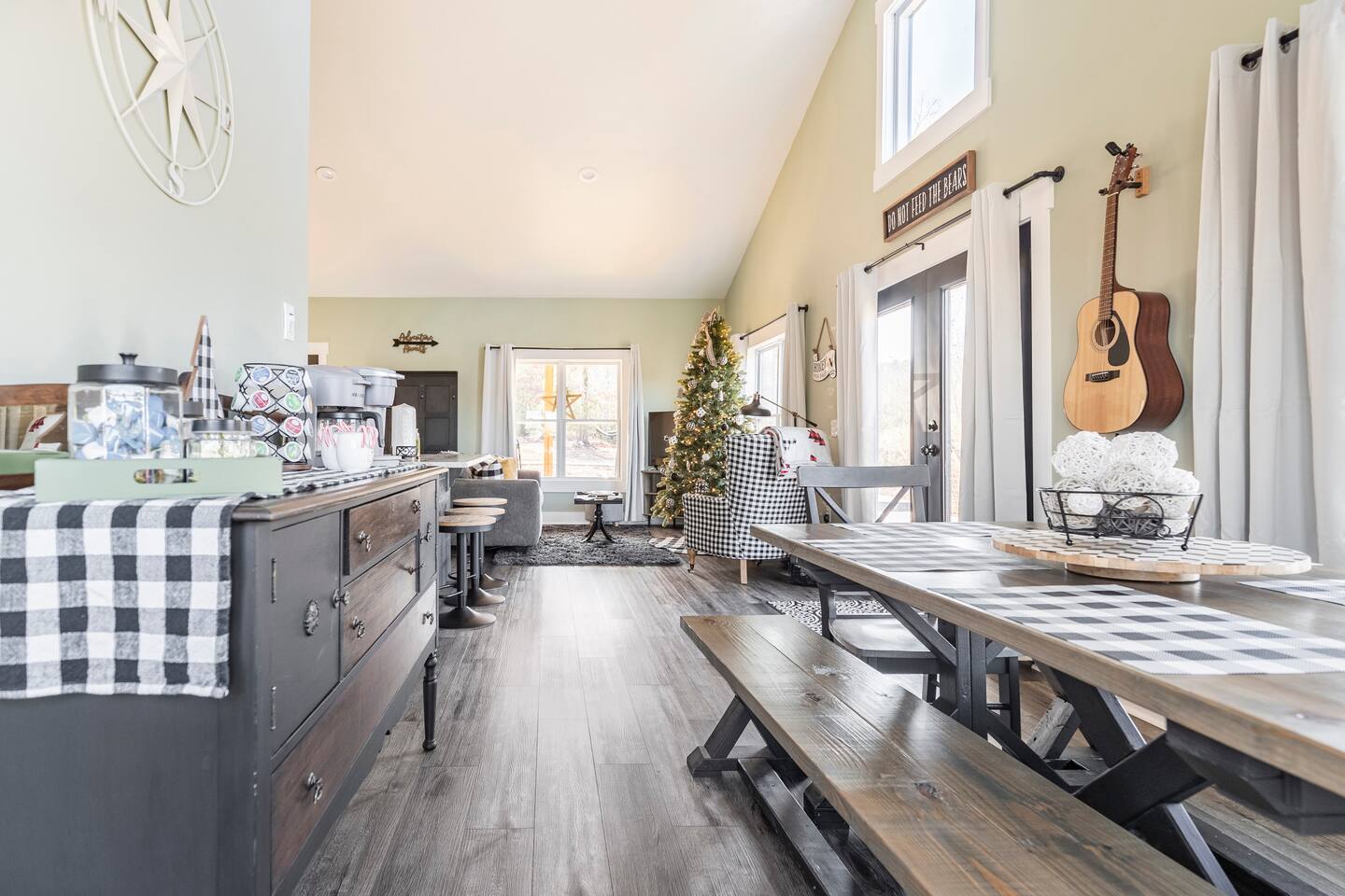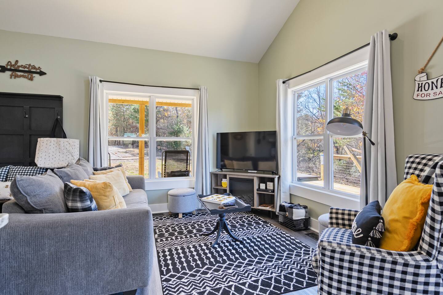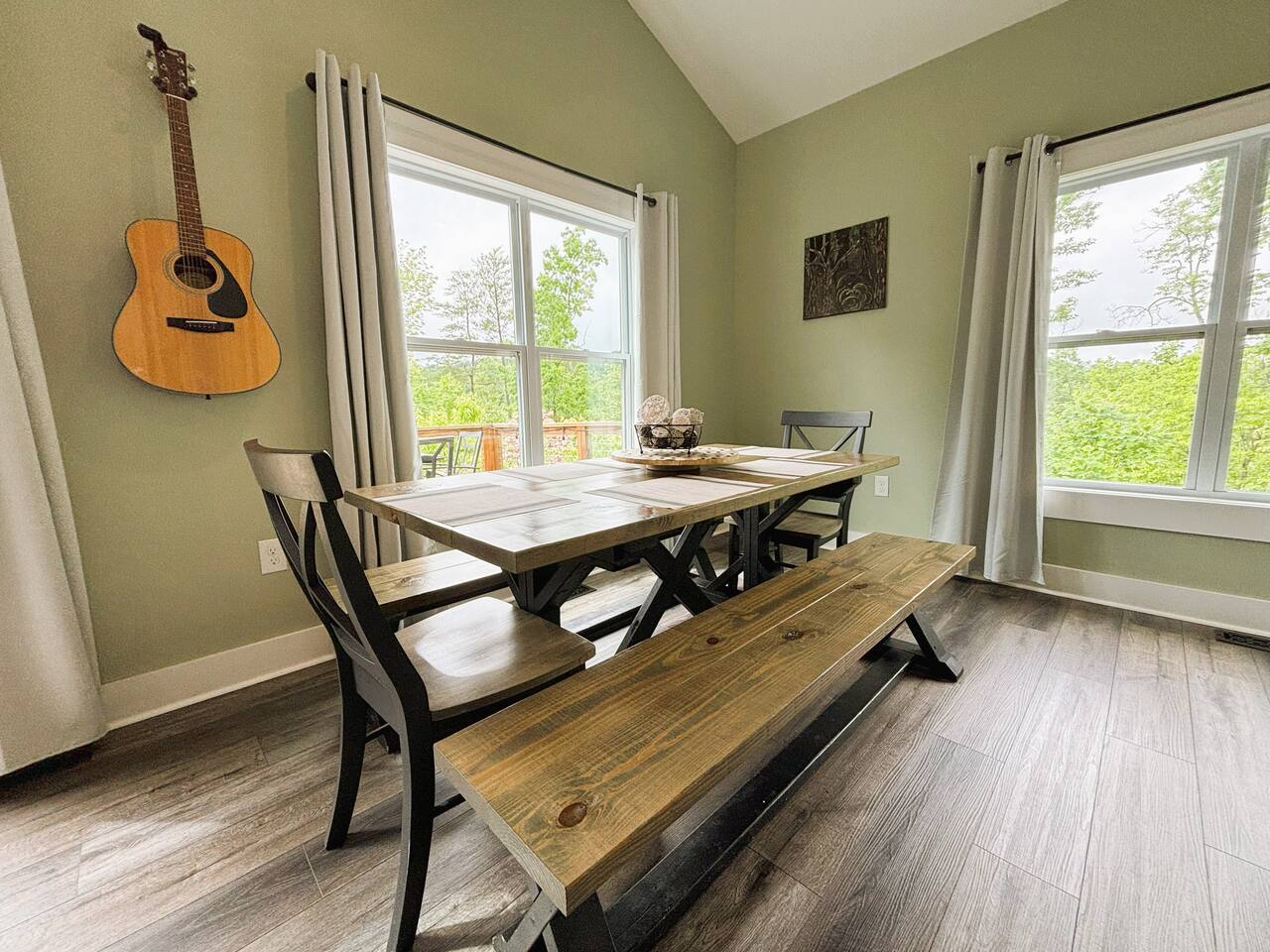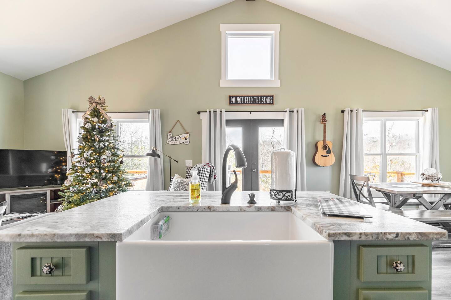 ☆☆ HIGHLIGHTS ☆☆ ✹ 2 bedrooms; 2 king beds, 1 sofa bed ✹ 2 full bathrooms; complimentary toiletries + bathrobes ✹ Open floor plan ✹ Full kitchen w/ modern appliances ✹ Coffee bar ✹ Comfy living room w/ lots of windows ✹ Accessible features - large doors, no stairs, accessible parking ✹Smart TV’s in living room and bedrooms ✹ Free WiFi ✹ Washer + dryer ✹ View of Cedar Mountain ✹ Covered porch w/ rocking chairs + zero gravity chairs ✹ Back deck w/ BBQ + outdoor dining ✹ Hot tub ✹ Hammocks ✹ Outdoor fire pit (firewood provided) ✹ Free parking ✹ 1-mile loop trail onsite ✹ Secluded location yet close to local wineries and historic Dahlonega Eager to Read More? Here Are A Few Kind Words From Our Previous Guests: “One of our top 10 AirBnBs ever! Chad is super helpful, and you can tell they’ve put a lot of work into this cabin! It has a gorgeous view of the North GA mountains, and it’s even better from the hot tub! We’ll be staying here every time we come back!” - Drew “Beautiful home, tucked away in a peaceful yet scenic location. The home was perfect in every way. From decor details, to an extra football to toss around. Would highly recommend to anyone wanting a home away from home. Chad was a fantastic host, responsive and detailed about activities to do outside the home. Look forward to our next visit again, soon!” - Hannah “We stayed at Chad’s mountain cabin in Dahlonega this past weekend. Chad has thought of everything! We loved having a fully stocked kitchen so we could cook breakfast and enjoy the beautiful Mountain View. (The wild blackberries, wild azaleas and mountain laurel were blooming) An extra convenience was having a washer and dryer. Can’t wait to visit again!” - Sheila ★★ BEDROOMS ★★ This private getaway features two tastefully decorated bedrooms, so you can enjoy a quiet place to relax after a day of outdoor activities. There is ample storage space to unpack your belongings and feel at home. ✹ Primary bedroom: King-sized bed, Smart Tv, dresser, closet, large window ✹ Second bedroom: King-sized bed, Smart TV, dresser, charging ports, large window with a view of Cedar Mountain, ensuite bathroom ✹ Living room: sleeper sofa for additional guests ✔ Silk bed linens ✔ Extra pillows and blankets ✔ Bathrobes ✔ Hangers ✔ Room-darkening shades ★★ BATHROOMS ★★ You’ll find two full bathrooms, providing enough space for your whole family to freshen up. Each bathroom features a single vanity and a shower/tub combination so you can choose between a relaxing soak or a refreshing shower. ✔ Fresh towels ✔ Shampoo, conditioner, and body wash ✔ Washer and dryer ✔ Iron ★★ KITCHEN & DINING ★★ Whip up delicious meals for the whole family in this fully equipped space. Boasting stainless steel appliances, a kitchen island with seating for 3, and ample cookware and dishware, you’ll love the flexibility and convenience this space provides. When you’re ready to eat, serve your meals on the charming farmhouse-style dining table or take a seat at the kitchen counter. ✔ Full-size fridge and freezer ✔ Stainless appliances ✔ Oven, stove, dishwasher, microwave ✔ Coffee bar with a Keurig coffee machine ✔ Kitchen island for 3 ✔ Large dining table ★★ LIVING ROOM ★★ The bright living room is the perfect place to relax after a long day. Sink into the plush sofa and watch a show on the Smart TV or enjoy a game night with your whole group. You’ll love the cozy cabin decor and large windows which provide plenty of natural light and views of the wooded lot throughout the day. ✔ Comfy sofa bed and chair ✔ Smart TV ✔ Free wifi ✔ Large windows ✔ Board games ✔ Air conditioning and heating ★★ OUTDOOR SPACE ★★ Step out onto the back deck and take in the stunning views of Cedar Mountain while soaking your muscles in the hot tub. This is a great place to relax while the grill master of your group makes something delicious on the BBQ. There is plenty of outdoor seating to take advantage of while sipping a coffee and enjoying the gorgeous views. ✔ Back deck with BBQ, dining table, hot tub, hammock ✔ Cedar Mountain views ✔ Porch with rocking chairs and zero gravity chairs ✔ Fire pit with firewood provided ★★ ACTIVITIES/ATTRACTIONS ★★ There are plenty of enjoyable activities to experience in the Dahlonega area, and our cabin provides an excellent starting point for your exploration. Check out some of the exhilarating options available to you: Tourist Attractions ✔ Dahlonega Gold Museum State Historic Site (12 mins, 7.1 miles) ✔ Consolidated Gold Mine (12 mins, 6.7 miles) ✔ Historic town of Dahlonega (12mins, 7.1 miles) Wineries and Vineyards ✔ Wolf Mountain Vineyard (8 min, 3.4 miles) ✔ Etowah Meadery and Brewery (7 min, 4.2 miles) ✔ Cavender Creek Vineyard (11 min, 6.5 miles) Venues ✔ White Oaks Vineyard (6 min, 2.8 miles) ✔ Cavender Castle (9 min, 4.6 miles) ✔ R-Ranch (7 min, 3.2 miles) Trails for Hikers ✔ Lake Zwerner Trail - 3.2 mile loop (9 min, 5.5 miles) ✔ Preacher’s Rock - 2.0 miles out&back (14 min, 7.2 miles) ✔ Dockery Lake Loop - 0.6 mile loop (14 min, 6.0 miles) Check out our guidebook or ask us for more activities/attractions within your reach when you book with us! ★ ★ ★ Book Today & Let Us Take Care Of You In Dahlonega! ★ ★ ★ Guest Access: ✹ GENERAL: Guests can enjoy private access to the entire cabin. ✹ COMPLIMENTARY ESSENTIALS: We provide guests with shampoo, conditioner, body wash, coffee pods, and firewood. ✹ ACCESSIBILITY: This cabin has no steps, an accessible parking spot, and features doorways that are wider than 32 inches. ✹ PARKING: Free parking is available on-site. ✹ FAMILY: Traveling with little ones? We’ve got you covered with a few supplies including a Pack ’n play/travel crib and board games, so your little ones never get bored. ✹ NO PETS: We have a no-pet policy. Don