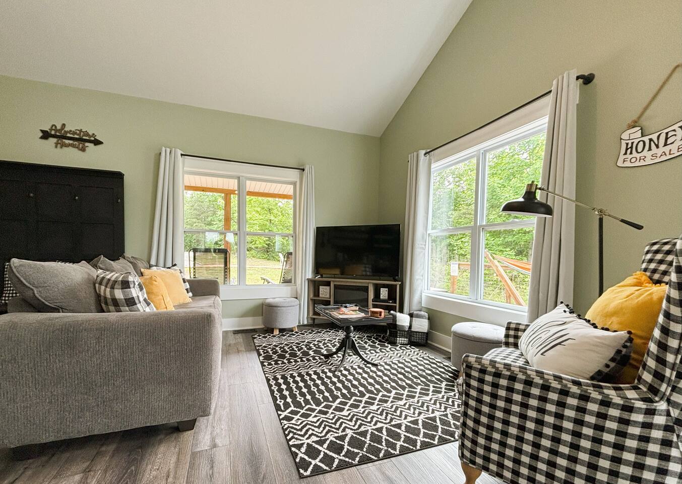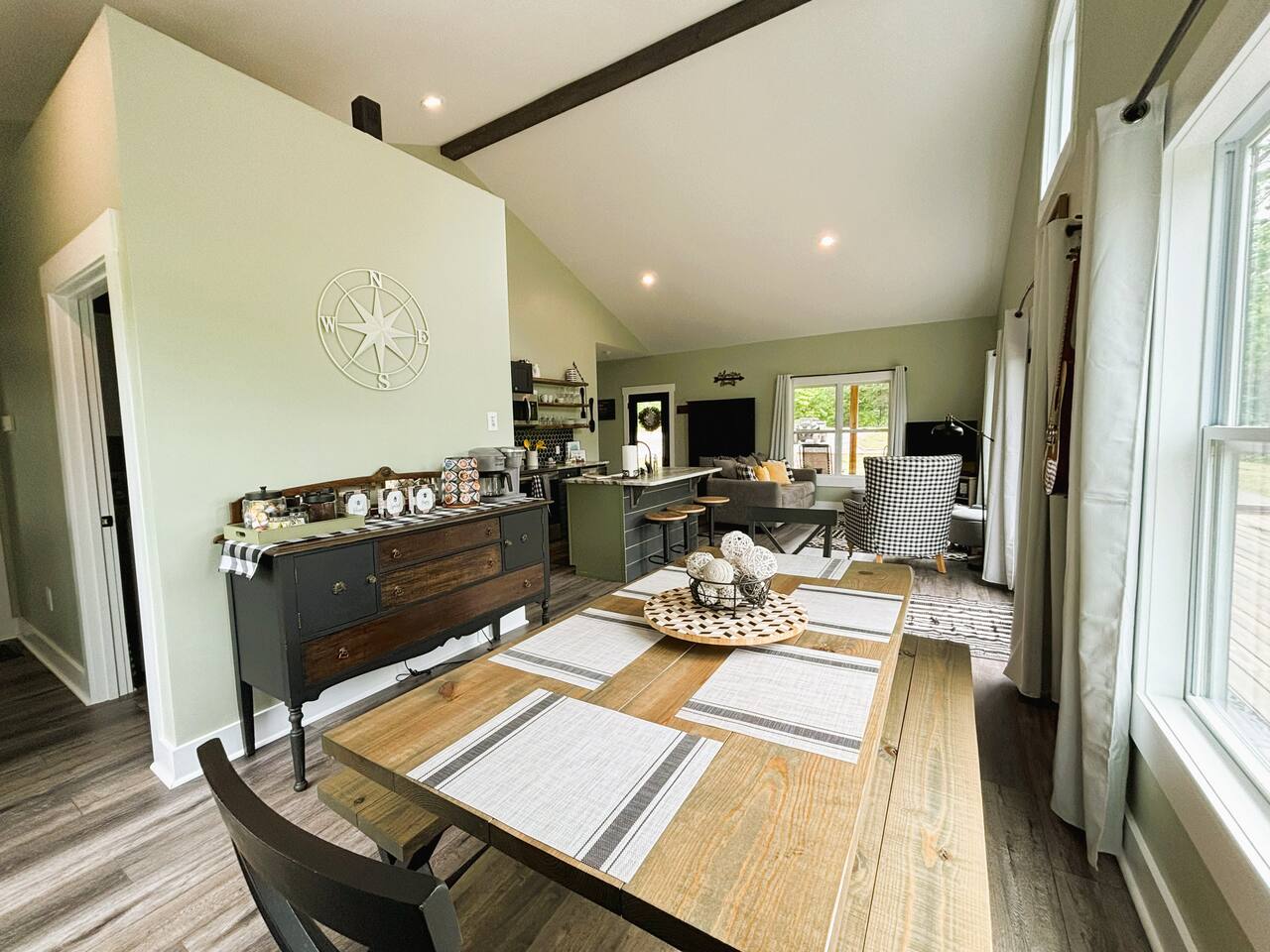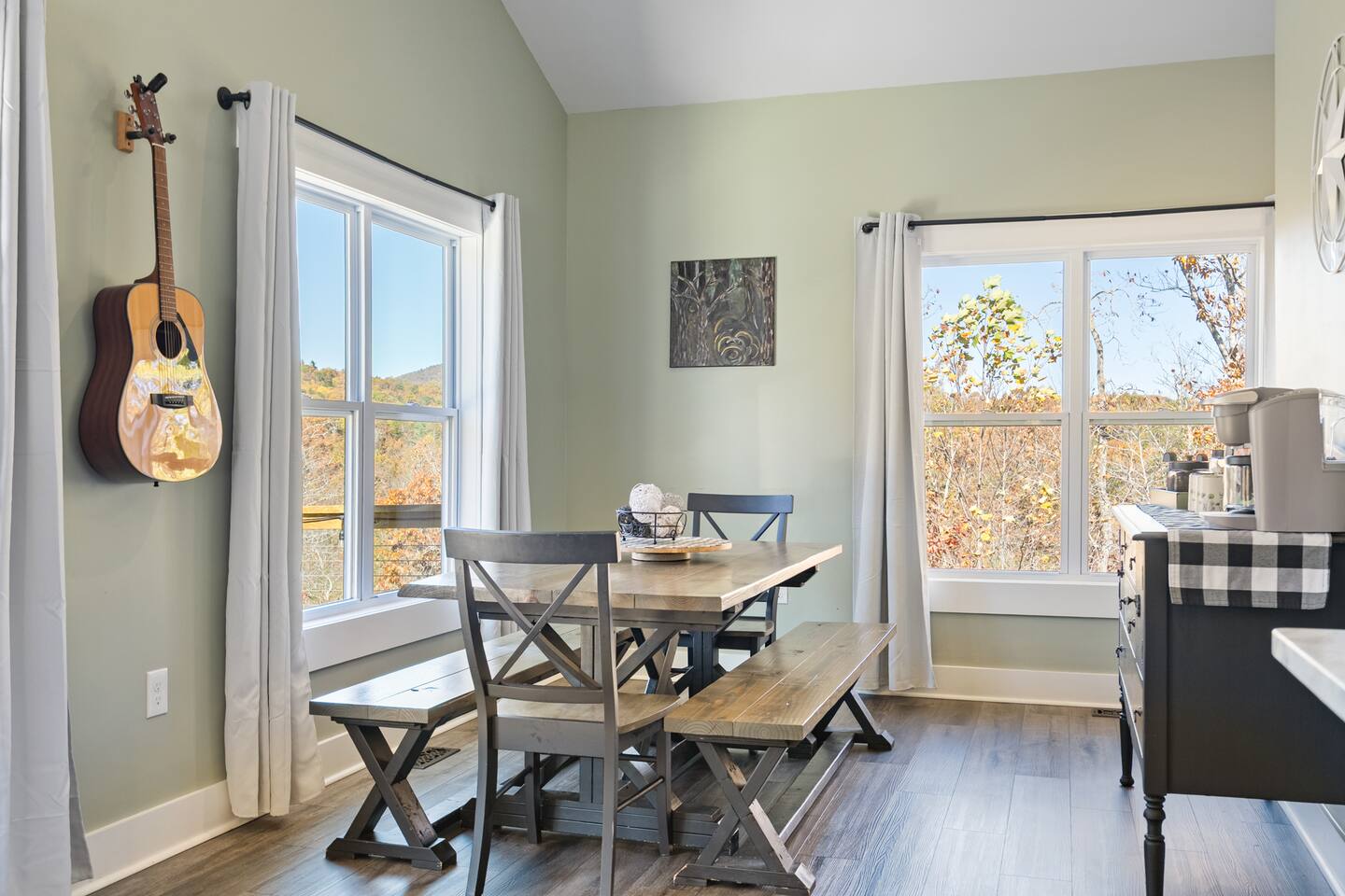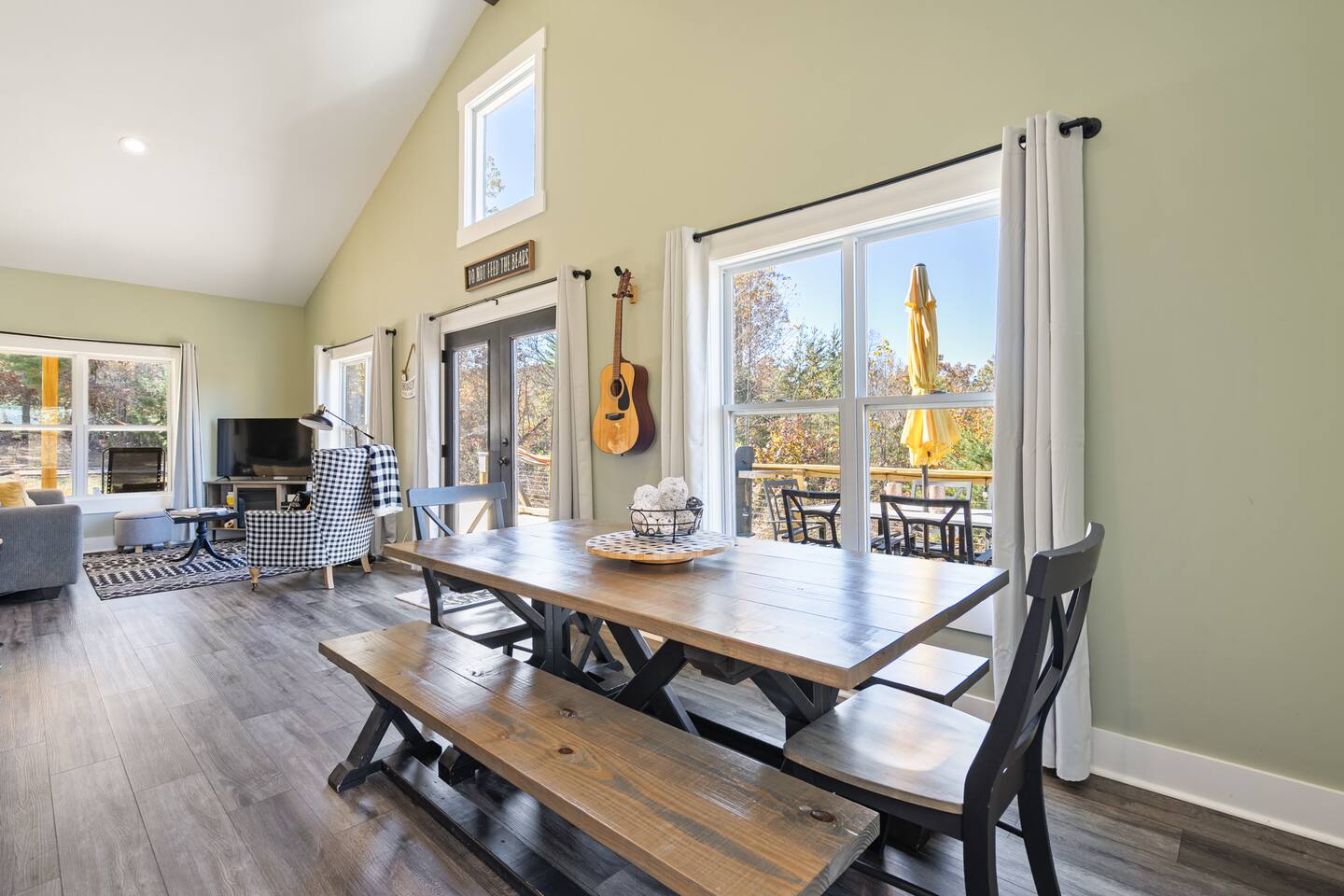 ☆☆ HIGHLIGHTS ☆☆ ✹ 2 bedrooms; 2 king beds, 1 sofa bed ✹ 2 full bathrooms; complimentary toiletries + bathrobes ✹ Open floor plan ✹ Full kitchen w/ modern appliances ✹ Coffee bar ✹ Comfy living room w/ lots of windows ✹ Accessible features - large doors, no stairs, accessible parking ✹Smart TV’s in living room and bedrooms ✹ Free WiFi ✹ Washer + dryer ✹ View of Cedar Mountain ✹ Covered porch w/ rocking chairs + zero gravity chairs ✹ Back deck w/ BBQ + outdoor dining ✹ Hot tub ✹ Hammocks ✹ Outdoor fire pit (firewood provided) ✹ Free parking ✹ 1-mile loop trail onsite ✹ Secluded location yet close to local wineries and historic Dahlonega Eager to Read More? Here Are A Few Kind Words From Our Previous Guests: “One of our top 10 AirBnBs ever! Chad is super helpful, and you can tell they’ve put a lot of work into this cabin! It has a gorgeous view of the North GA mountains, and it’s even better from the hot tub! We’ll be staying here every time we come back!” - Drew “Beautiful home, tucked away in a peaceful yet scenic location. The home was perfect in every way. From decor details, to an extra football to toss around. Would highly recommend to anyone wanting a home away from home. Chad was a fantastic host, responsive and detailed about activities to do outside the home. Look forward to our next visit again, soon!” - Hannah “We stayed at Chad’s mountain cabin in Dahlonega this past weekend. Chad has thought of everything! We loved having a fully stocked kitchen so we could cook breakfast and enjoy the beautiful Mountain View. (The wild blackberries, wild azaleas and mountain laurel were blooming) An extra convenience was having a washer and dryer. Can’t wait to visit again!” - Sheila ★★ BEDROOMS ★★ This private getaway features two tastefully decorated bedrooms, so you can enjoy a quiet place to relax after a day of outdoor activities. There is ample storage space to unpack your belongings and feel at home. ✹ Primary bedroom: King-sized bed, Smart Tv, dresser, closet, large window ✹ Second bedroom: King-sized bed, Smart TV, dresser, charging ports, large window with a view of Cedar Mountain, ensuite bathroom ✹ Living room: sleeper sofa for additional guests ✔ Silk bed linens ✔ Extra pillows and blankets ✔ Bathrobes ✔ Hangers ✔ Room-darkening shades ★★ BATHROOMS ★★ You’ll find two full bathrooms, providing enough space for your whole family to freshen up. Each bathroom features a single vanity and a shower/tub combination so you can choose between a relaxing soak or a refreshing shower. ✔ Fresh towels ✔ Shampoo, conditioner, and body wash ✔ Washer and dryer ✔ Iron ★★ KITCHEN & DINING ★★ Whip up delicious meals for the whole family in this fully equipped space. Boasting stainless steel appliances, a kitchen island with seating for 3, and ample cookware and dishware, you’ll love the flexibility and convenience this space provides. When you’re ready to eat, serve your meals on the charming farmhouse-style dining table or take a seat at the kitchen counter. ✔ Full-size fridge and freezer ✔ Stainless appliances ✔ Oven, stove, dishwasher, microwave ✔ Coffee bar with a Keurig coffee machine ✔ Kitchen island for 3 ✔ Large dining table ★★ LIVING ROOM ★★ The bright living room is the perfect place to relax after a long day. Sink into the plush sofa and watch a show on the Smart TV or enjoy a game night with your whole group. You’ll love the cozy cabin decor and large windows which provide plenty of natural light and views of the wooded lot throughout the day. ✔ Comfy sofa bed and chair ✔ Smart TV ✔ Free wifi ✔ Large windows ✔ Board games ✔ Air conditioning and heating ★★ OUTDOOR SPACE ★★ Step out onto the back deck and take in the stunning views of Cedar Mountain while soaking your muscles in the hot tub. This is a great place to relax while the grill master of your group makes something delicious on the BBQ. There is plenty of outdoor seating to take advantage of while sipping a coffee and enjoying the gorgeous views. ✔ Back deck with BBQ, dining table, hot tub, hammock ✔ Cedar Mountain views ✔ Porch with rocking chairs and zero gravity chairs ✔ Fire pit with firewood provided ★★ ACTIVITIES/ATTRACTIONS ★★ There are plenty of enjoyable activities to experience in the Dahlonega area, and our cabin provides an excellent starting point for your exploration. Check out some of the exhilarating options available to you: Tourist Attractions ✔ Dahlonega Gold Museum State Historic Site (12 mins, 7.1 miles) ✔ Consolidated Gold Mine (12 mins, 6.7 miles) ✔ Historic town of Dahlonega (12mins, 7.1 miles) Wineries and Vineyards ✔ Wolf Mountain Vineyard (8 min, 3.4 miles) ✔ Etowah Meadery and Brewery (7 min, 4.2 miles) ✔ Cavender Creek Vineyard (11 min, 6.5 miles) Venues ✔ White Oaks Vineyard (6 min, 2.8 miles) ✔ Cavender Castle (9 min, 4.6 miles) ✔ R-Ranch (7 min, 3.2 miles) Trails for Hikers ✔ Lake Zwerner Trail - 3.2 mile loop (9 min, 5.5 miles) ✔ Preacher’s Rock - 2.0 miles out&back (14 min, 7.2 miles) ✔ Dockery Lake Loop - 0.6 mile loop (14 min, 6.0 miles) Check out our guidebook or ask us for more activities/attractions within your reach when you book with us! ★ ★ ★ Book Today & Let Us Take Care Of You In Dahlonega! ★ ★ ★ Guest Access: ✹ GENERAL: Guests can enjoy private access to the entire cabin. ✹ COMPLIMENTARY ESSENTIALS: We provide guests with shampoo, conditioner, body wash, coffee pods, and firewood. ✹ ACCESSIBILITY: This cabin has no steps, an accessible parking spot, and features doorways that are wider than 32 inches. ✹ PARKING: Free parking is available on-site. ✹ FAMILY: Traveling with little ones? We’ve got you covered with a few supplies including a Pack ’n play/travel crib and board games, so your little ones never get bored. ✹ NO PETS: We have a no-pet policy. Don