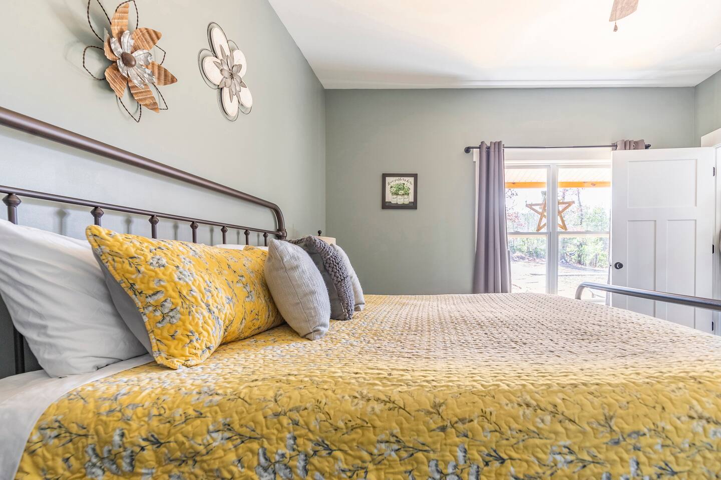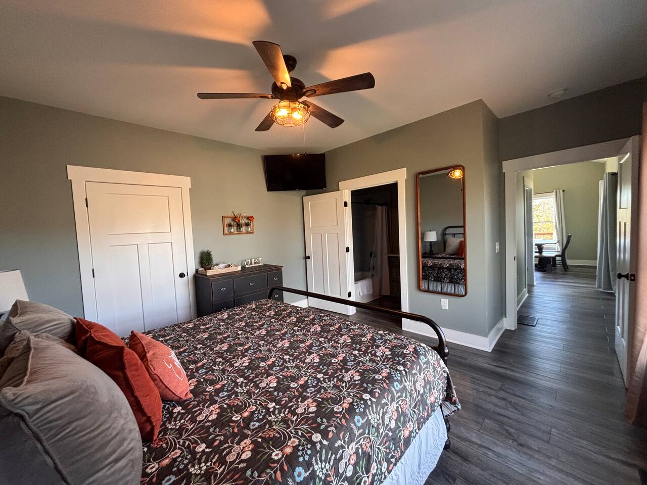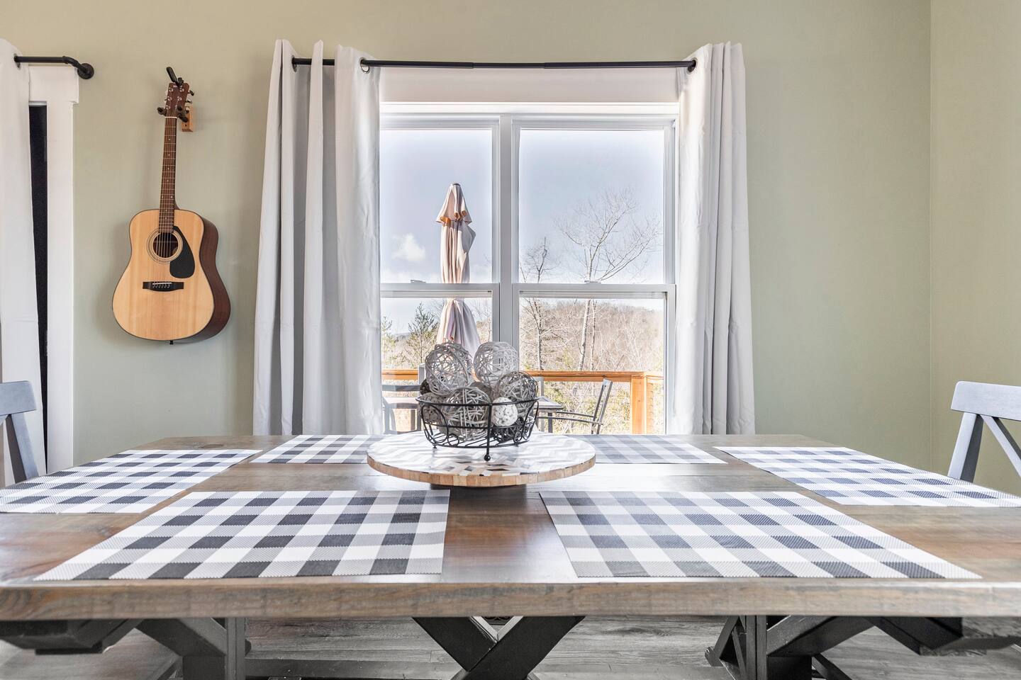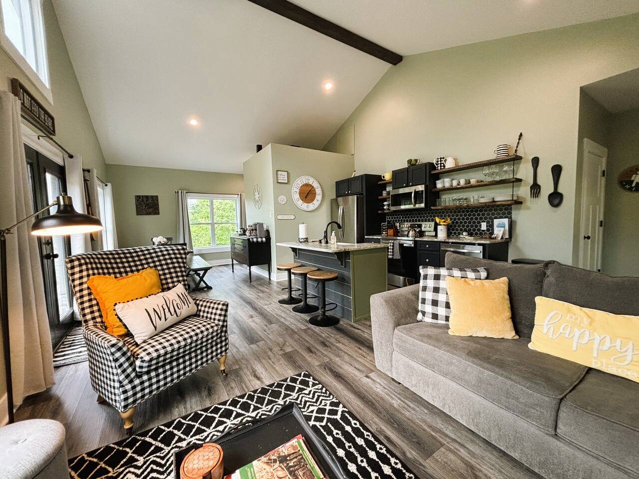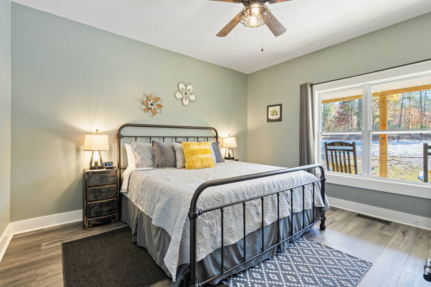 ☆☆ HIGHLIGHTS ☆☆ ✹ 2 bedrooms; 2 king beds, 1 sofa bed ✹ 2 full bathrooms; complimentary toiletries + bathrobes ✹ Open floor plan ✹ Full kitchen w/ modern appliances ✹ Coffee bar ✹ Comfy living room w/ lots of windows ✹ Accessible features - large doors, no stairs, accessible parking ✹Smart TV’s in living room and bedrooms ✹ Free WiFi ✹ Washer + dryer ✹ View of Cedar Mountain ✹ Covered porch w/ rocking chairs + zero gravity chairs ✹ Back deck w/ BBQ + outdoor dining ✹ Hot tub ✹ Hammocks ✹ Outdoor fire pit (firewood provided) ✹ Free parking ✹ 1-mile loop trail onsite ✹ Secluded location yet close to local wineries and historic Dahlonega Eager to Read More? Here Are A Few Kind Words From Our Previous Guests: “One of our top 10 AirBnBs ever! Chad is super helpful, and you can tell they’ve put a lot of work into this cabin! It has a gorgeous view of the North GA mountains, and it’s even better from the hot tub! We’ll be staying here every time we come back!” - Drew “Beautiful home, tucked away in a peaceful yet scenic location. The home was perfect in every way. From decor details, to an extra football to toss around. Would highly recommend to anyone wanting a home away from home. Chad was a fantastic host, responsive and detailed about activities to do outside the home. Look forward to our next visit again, soon!” - Hannah “We stayed at Chad’s mountain cabin in Dahlonega this past weekend. Chad has thought of everything! We loved having a fully stocked kitchen so we could cook breakfast and enjoy the beautiful Mountain View. (The wild blackberries, wild azaleas and mountain laurel were blooming) An extra convenience was having a washer and dryer. Can’t wait to visit again!” - Sheila ★★ BEDROOMS ★★ This private getaway features two tastefully decorated bedrooms, so you can enjoy a quiet place to relax after a day of outdoor activities. There is ample storage space to unpack your belongings and feel at home. ✹ Primary bedroom: King-sized bed, Smart Tv, dresser, closet, large window ✹ Second bedroom: King-sized bed, Smart TV, dresser, charging ports, large window with a view of Cedar Mountain, ensuite bathroom ✹ Living room: sleeper sofa for additional guests ✔ Silk bed linens ✔ Extra pillows and blankets ✔ Bathrobes ✔ Hangers ✔ Room-darkening shades ★★ BATHROOMS ★★ You’ll find two full bathrooms, providing enough space for your whole family to freshen up. Each bathroom features a single vanity and a shower/tub combination so you can choose between a relaxing soak or a refreshing shower. ✔ Fresh towels ✔ Shampoo, conditioner, and body wash ✔ Washer and dryer ✔ Iron ★★ KITCHEN & DINING ★★ Whip up delicious meals for the whole family in this fully equipped space. Boasting stainless steel appliances, a kitchen island with seating for 3, and ample cookware and dishware, you’ll love the flexibility and convenience this space provides. When you’re ready to eat, serve your meals on the charming farmhouse-style dining table or take a seat at the kitchen counter. ✔ Full-size fridge and freezer ✔ Stainless appliances ✔ Oven, stove, dishwasher, microwave ✔ Coffee bar with a Keurig coffee machine ✔ Kitchen island for 3 ✔ Large dining table ★★ LIVING ROOM ★★ The bright living room is the perfect place to relax after a long day. Sink into the plush sofa and watch a show on the Smart TV or enjoy a game night with your whole group. You’ll love the cozy cabin decor and large windows which provide plenty of natural light and views of the wooded lot throughout the day. ✔ Comfy sofa bed and chair ✔ Smart TV ✔ Free wifi ✔ Large windows ✔ Board games ✔ Air conditioning and heating ★★ OUTDOOR SPACE ★★ Step out onto the back deck and take in the stunning views of Cedar Mountain while soaking your muscles in the hot tub. This is a great place to relax while the grill master of your group makes something delicious on the BBQ. There is plenty of outdoor seating to take advantage of while sipping a coffee and enjoying the gorgeous views. ✔ Back deck with BBQ, dining table, hot tub, hammock ✔ Cedar Mountain views ✔ Porch with rocking chairs and zero gravity chairs ✔ Fire pit with firewood provided ★★ ACTIVITIES/ATTRACTIONS ★★ There are plenty of enjoyable activities to experience in the Dahlonega area, and our cabin provides an excellent starting point for your exploration. Check out some of the exhilarating options available to you: Tourist Attractions ✔ Dahlonega Gold Museum State Historic Site (12 mins, 7.1 miles) ✔ Consolidated Gold Mine (12 mins, 6.7 miles) ✔ Historic town of Dahlonega (12mins, 7.1 miles) Wineries and Vineyards ✔ Wolf Mountain Vineyard (8 min, 3.4 miles) ✔ Etowah Meadery and Brewery (7 min, 4.2 miles) ✔ Cavender Creek Vineyard (11 min, 6.5 miles) Venues ✔ White Oaks Vineyard (6 min, 2.8 miles) ✔ Cavender Castle (9 min, 4.6 miles) ✔ R-Ranch (7 min, 3.2 miles) Trails for Hikers ✔ Lake Zwerner Trail - 3.2 mile loop (9 min, 5.5 miles) ✔ Preacher’s Rock - 2.0 miles out&back (14 min, 7.2 miles) ✔ Dockery Lake Loop - 0.6 mile loop (14 min, 6.0 miles) Check out our guidebook or ask us for more activities/attractions within your reach when you book with us! ★ ★ ★ Book Today & Let Us Take Care Of You In Dahlonega! ★ ★ ★ Guest Access: ✹ GENERAL: Guests can enjoy private access to the entire cabin. ✹ COMPLIMENTARY ESSENTIALS: We provide guests with shampoo, conditioner, body wash, coffee pods, and firewood. ✹ ACCESSIBILITY: This cabin has no steps, an accessible parking spot, and features doorways that are wider than 32 inches. ✹ PARKING: Free parking is available on-site. ✹ FAMILY: Traveling with little ones? We’ve got you covered with a few supplies including a Pack ’n play/travel crib and board games, so your little ones never get bored. ✹ NO PETS: We have a no-pet policy. Don