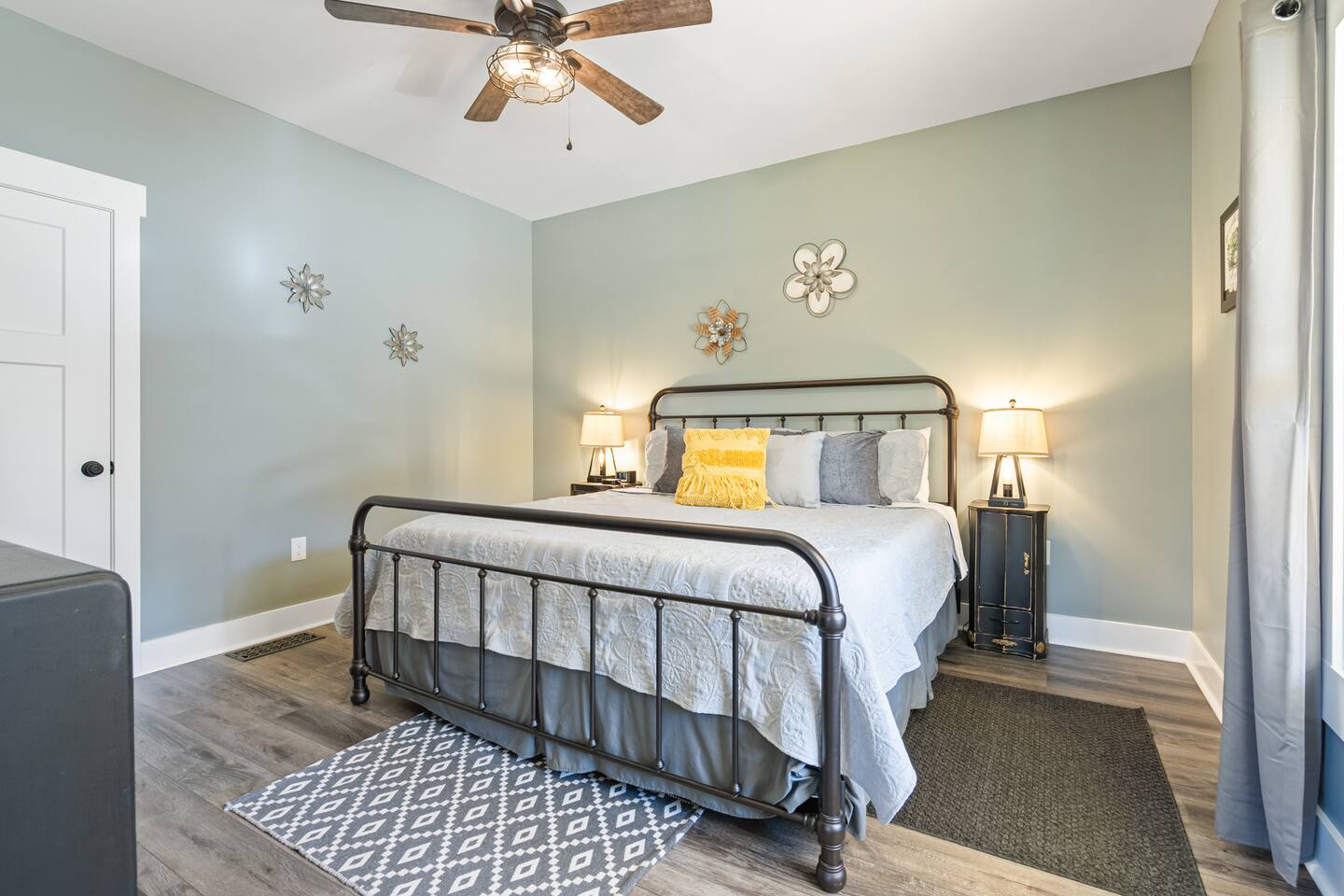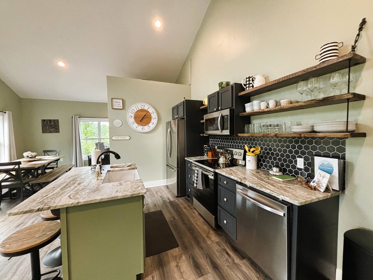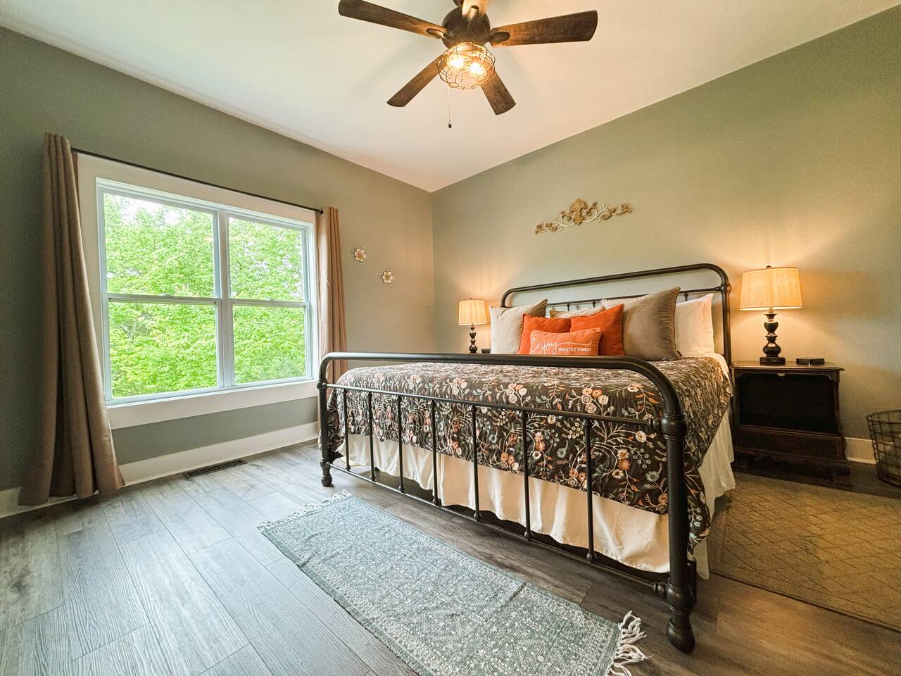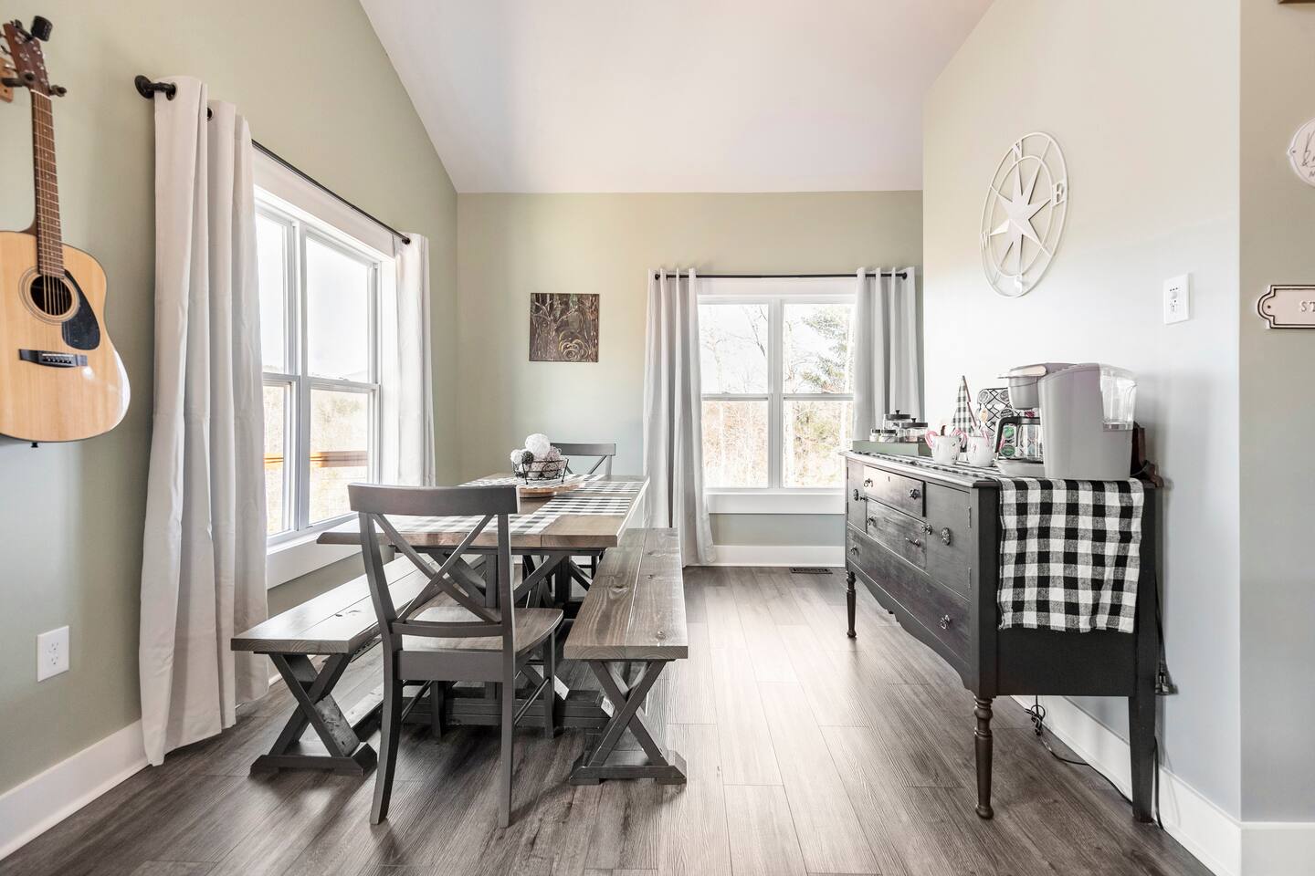 ☆☆ HIGHLIGHTS ☆☆ ✹ 2 bedrooms; 2 king beds, 1 sofa bed ✹ 2 full bathrooms; complimentary toiletries + bathrobes ✹ Open floor plan ✹ Full kitchen w/ modern appliances ✹ Coffee bar ✹ Comfy living room w/ lots of windows ✹ Accessible features - large doors, no stairs, accessible parking ✹Smart TV’s in living room and bedrooms ✹ Free WiFi ✹ Washer + dryer ✹ View of Cedar Mountain ✹ Covered porch w/ rocking chairs + zero gravity chairs ✹ Back deck w/ BBQ + outdoor dining ✹ Hot tub ✹ Hammocks ✹ Outdoor fire pit (firewood provided) ✹ Free parking ✹ 1-mile loop trail onsite ✹ Secluded location yet close to local wineries and historic Dahlonega Eager to Read More? Here Are A Few Kind Words From Our Previous Guests: “One of our top 10 AirBnBs ever! Chad is super helpful, and you can tell they’ve put a lot of work into this cabin! It has a gorgeous view of the North GA mountains, and it’s even better from the hot tub! We’ll be staying here every time we come back!” - Drew “Beautiful home, tucked away in a peaceful yet scenic location. The home was perfect in every way. From decor details, to an extra football to toss around. Would highly recommend to anyone wanting a home away from home. Chad was a fantastic host, responsive and detailed about activities to do outside the home. Look forward to our next visit again, soon!” - Hannah “We stayed at Chad’s mountain cabin in Dahlonega this past weekend. Chad has thought of everything! We loved having a fully stocked kitchen so we could cook breakfast and enjoy the beautiful Mountain View. (The wild blackberries, wild azaleas and mountain laurel were blooming) An extra convenience was having a washer and dryer. Can’t wait to visit again!” - Sheila ★★ BEDROOMS ★★ This private getaway features two tastefully decorated bedrooms, so you can enjoy a quiet place to relax after a day of outdoor activities. There is ample storage space to unpack your belongings and feel at home. ✹ Primary bedroom: King-sized bed, Smart Tv, dresser, closet, large window ✹ Second bedroom: King-sized bed, Smart TV, dresser, charging ports, large window with a view of Cedar Mountain, ensuite bathroom ✹ Living room: sleeper sofa for additional guests ✔ Silk bed linens ✔ Extra pillows and blankets ✔ Bathrobes ✔ Hangers ✔ Room-darkening shades ★★ BATHROOMS ★★ You’ll find two full bathrooms, providing enough space for your whole family to freshen up. Each bathroom features a single vanity and a shower/tub combination so you can choose between a relaxing soak or a refreshing shower. ✔ Fresh towels ✔ Shampoo, conditioner, and body wash ✔ Washer and dryer ✔ Iron ★★ KITCHEN & DINING ★★ Whip up delicious meals for the whole family in this fully equipped space. Boasting stainless steel appliances, a kitchen island with seating for 3, and ample cookware and dishware, you’ll love the flexibility and convenience this space provides. When you’re ready to eat, serve your meals on the charming farmhouse-style dining table or take a seat at the kitchen counter. ✔ Full-size fridge and freezer ✔ Stainless appliances ✔ Oven, stove, dishwasher, microwave ✔ Coffee bar with a Keurig coffee machine ✔ Kitchen island for 3 ✔ Large dining table ★★ LIVING ROOM ★★ The bright living room is the perfect place to relax after a long day. Sink into the plush sofa and watch a show on the Smart TV or enjoy a game night with your whole group. You’ll love the cozy cabin decor and large windows which provide plenty of natural light and views of the wooded lot throughout the day. ✔ Comfy sofa bed and chair ✔ Smart TV ✔ Free wifi ✔ Large windows ✔ Board games ✔ Air conditioning and heating ★★ OUTDOOR SPACE ★★ Step out onto the back deck and take in the stunning views of Cedar Mountain while soaking your muscles in the hot tub. This is a great place to relax while the grill master of your group makes something delicious on the BBQ. There is plenty of outdoor seating to take advantage of while sipping a coffee and enjoying the gorgeous views. ✔ Back deck with BBQ, dining table, hot tub, hammock ✔ Cedar Mountain views ✔ Porch with rocking chairs and zero gravity chairs ✔ Fire pit with firewood provided ★★ ACTIVITIES/ATTRACTIONS ★★ There are plenty of enjoyable activities to experience in the Dahlonega area, and our cabin provides an excellent starting point for your exploration. Check out some of the exhilarating options available to you: Tourist Attractions ✔ Dahlonega Gold Museum State Historic Site (12 mins, 7.1 miles) ✔ Consolidated Gold Mine (12 mins, 6.7 miles) ✔ Historic town of Dahlonega (12mins, 7.1 miles) Wineries and Vineyards ✔ Wolf Mountain Vineyard (8 min, 3.4 miles) ✔ Etowah Meadery and Brewery (7 min, 4.2 miles) ✔ Cavender Creek Vineyard (11 min, 6.5 miles) Venues ✔ White Oaks Vineyard (6 min, 2.8 miles) ✔ Cavender Castle (9 min, 4.6 miles) ✔ R-Ranch (7 min, 3.2 miles) Trails for Hikers ✔ Lake Zwerner Trail - 3.2 mile loop (9 min, 5.5 miles) ✔ Preacher’s Rock - 2.0 miles out&back (14 min, 7.2 miles) ✔ Dockery Lake Loop - 0.6 mile loop (14 min, 6.0 miles) Check out our guidebook or ask us for more activities/attractions within your reach when you book with us! ★ ★ ★ Book Today & Let Us Take Care Of You In Dahlonega! ★ ★ ★ Guest Access: ✹ GENERAL: Guests can enjoy private access to the entire cabin. ✹ COMPLIMENTARY ESSENTIALS: We provide guests with shampoo, conditioner, body wash, coffee pods, and firewood. ✹ ACCESSIBILITY: This cabin has no steps, an accessible parking spot, and features doorways that are wider than 32 inches. ✹ PARKING: Free parking is available on-site. ✹ FAMILY: Traveling with little ones? We’ve got you covered with a few supplies including a Pack ’n play/travel crib and board games, so your little ones never get bored. ✹ NO PETS: We have a no-pet policy. Don