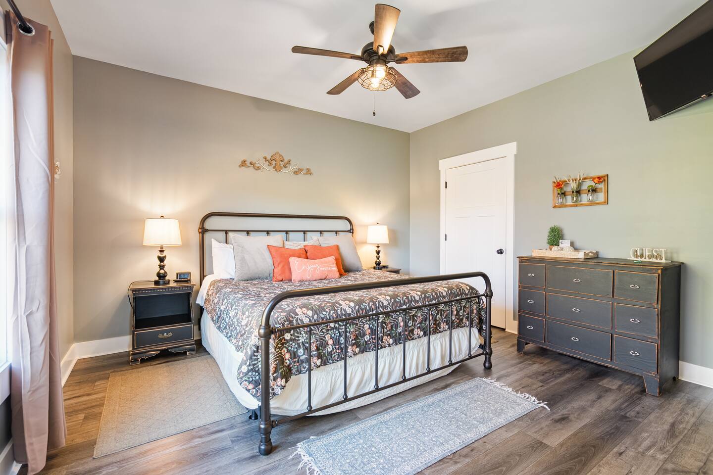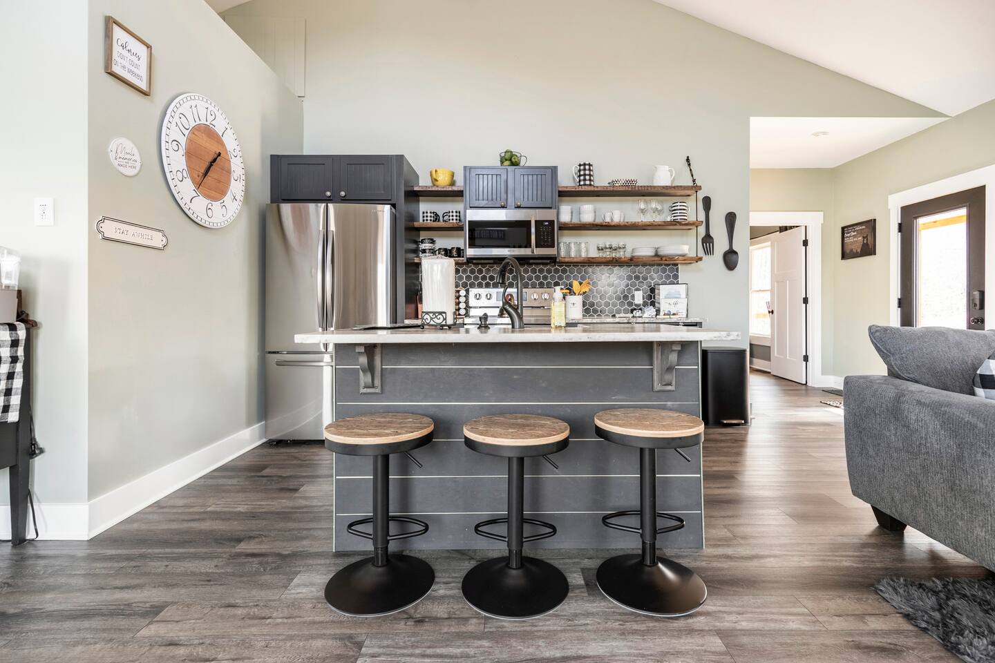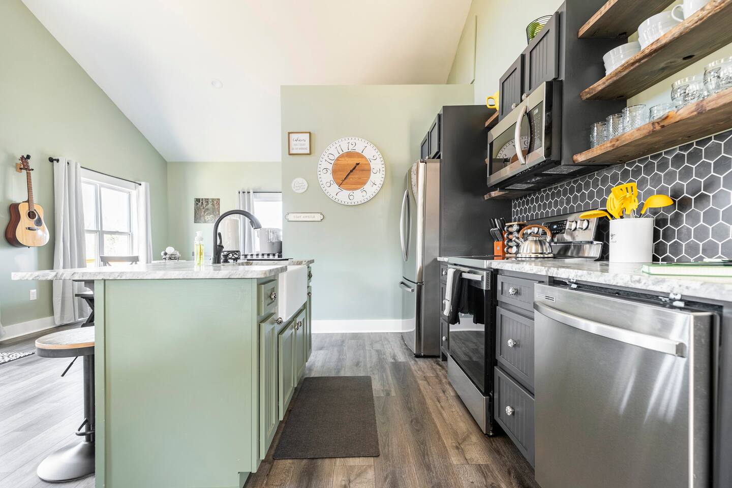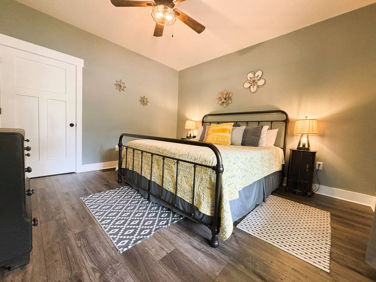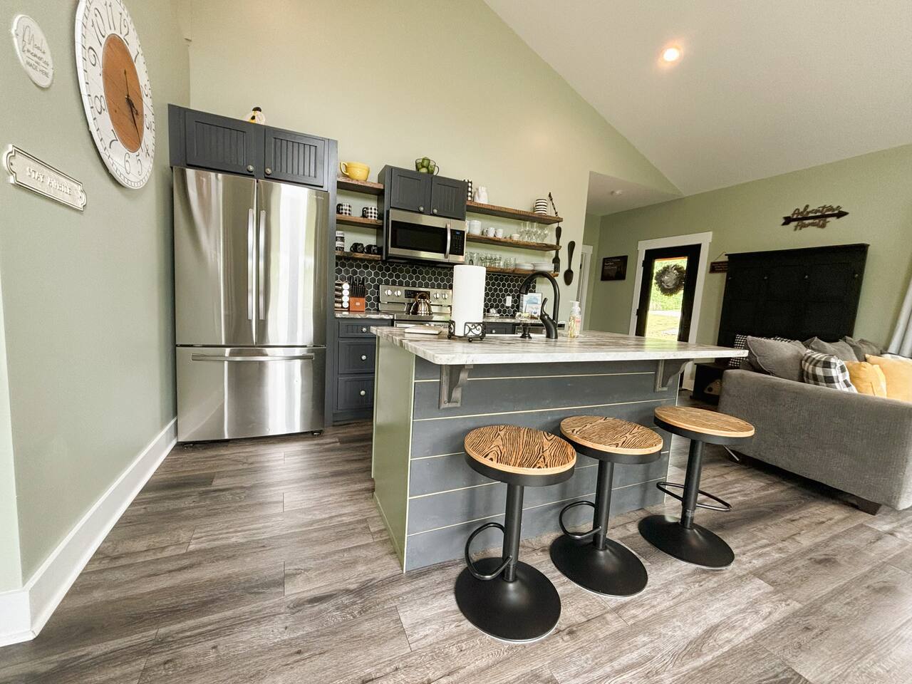 ☆☆ HIGHLIGHTS ☆☆ ✹ 2 bedrooms; 2 king beds, 1 sofa bed ✹ 2 full bathrooms; complimentary toiletries + bathrobes ✹ Open floor plan ✹ Full kitchen w/ modern appliances ✹ Coffee bar ✹ Comfy living room w/ lots of windows ✹ Accessible features - large doors, no stairs, accessible parking ✹Smart TV’s in living room and bedrooms ✹ Free WiFi ✹ Washer + dryer ✹ View of Cedar Mountain ✹ Covered porch w/ rocking chairs + zero gravity chairs ✹ Back deck w/ BBQ + outdoor dining ✹ Hot tub ✹ Hammocks ✹ Outdoor fire pit (firewood provided) ✹ Free parking ✹ 1-mile loop trail onsite ✹ Secluded location yet close to local wineries and historic Dahlonega Eager to Read More? Here Are A Few Kind Words From Our Previous Guests: “One of our top 10 AirBnBs ever! Chad is super helpful, and you can tell they’ve put a lot of work into this cabin! It has a gorgeous view of the North GA mountains, and it’s even better from the hot tub! We’ll be staying here every time we come back!” - Drew “Beautiful home, tucked away in a peaceful yet scenic location. The home was perfect in every way. From decor details, to an extra football to toss around. Would highly recommend to anyone wanting a home away from home. Chad was a fantastic host, responsive and detailed about activities to do outside the home. Look forward to our next visit again, soon!” - Hannah “We stayed at Chad’s mountain cabin in Dahlonega this past weekend. Chad has thought of everything! We loved having a fully stocked kitchen so we could cook breakfast and enjoy the beautiful Mountain View. (The wild blackberries, wild azaleas and mountain laurel were blooming) An extra convenience was having a washer and dryer. Can’t wait to visit again!” - Sheila ★★ BEDROOMS ★★ This private getaway features two tastefully decorated bedrooms, so you can enjoy a quiet place to relax after a day of outdoor activities. There is ample storage space to unpack your belongings and feel at home. ✹ Primary bedroom: King-sized bed, Smart Tv, dresser, closet, large window ✹ Second bedroom: King-sized bed, Smart TV, dresser, charging ports, large window with a view of Cedar Mountain, ensuite bathroom ✹ Living room: sleeper sofa for additional guests ✔ Silk bed linens ✔ Extra pillows and blankets ✔ Bathrobes ✔ Hangers ✔ Room-darkening shades ★★ BATHROOMS ★★ You’ll find two full bathrooms, providing enough space for your whole family to freshen up. Each bathroom features a single vanity and a shower/tub combination so you can choose between a relaxing soak or a refreshing shower. ✔ Fresh towels ✔ Shampoo, conditioner, and body wash ✔ Washer and dryer ✔ Iron ★★ KITCHEN & DINING ★★ Whip up delicious meals for the whole family in this fully equipped space. Boasting stainless steel appliances, a kitchen island with seating for 3, and ample cookware and dishware, you’ll love the flexibility and convenience this space provides. When you’re ready to eat, serve your meals on the charming farmhouse-style dining table or take a seat at the kitchen counter. ✔ Full-size fridge and freezer ✔ Stainless appliances ✔ Oven, stove, dishwasher, microwave ✔ Coffee bar with a Keurig coffee machine ✔ Kitchen island for 3 ✔ Large dining table ★★ LIVING ROOM ★★ The bright living room is the perfect place to relax after a long day. Sink into the plush sofa and watch a show on the Smart TV or enjoy a game night with your whole group. You’ll love the cozy cabin decor and large windows which provide plenty of natural light and views of the wooded lot throughout the day. ✔ Comfy sofa bed and chair ✔ Smart TV ✔ Free wifi ✔ Large windows ✔ Board games ✔ Air conditioning and heating ★★ OUTDOOR SPACE ★★ Step out onto the back deck and take in the stunning views of Cedar Mountain while soaking your muscles in the hot tub. This is a great place to relax while the grill master of your group makes something delicious on the BBQ. There is plenty of outdoor seating to take advantage of while sipping a coffee and enjoying the gorgeous views. ✔ Back deck with BBQ, dining table, hot tub, hammock ✔ Cedar Mountain views ✔ Porch with rocking chairs and zero gravity chairs ✔ Fire pit with firewood provided ★★ ACTIVITIES/ATTRACTIONS ★★ There are plenty of enjoyable activities to experience in the Dahlonega area, and our cabin provides an excellent starting point for your exploration. Check out some of the exhilarating options available to you: Tourist Attractions ✔ Dahlonega Gold Museum State Historic Site (12 mins, 7.1 miles) ✔ Consolidated Gold Mine (12 mins, 6.7 miles) ✔ Historic town of Dahlonega (12mins, 7.1 miles) Wineries and Vineyards ✔ Wolf Mountain Vineyard (8 min, 3.4 miles) ✔ Etowah Meadery and Brewery (7 min, 4.2 miles) ✔ Cavender Creek Vineyard (11 min, 6.5 miles) Venues ✔ White Oaks Vineyard (6 min, 2.8 miles) ✔ Cavender Castle (9 min, 4.6 miles) ✔ R-Ranch (7 min, 3.2 miles) Trails for Hikers ✔ Lake Zwerner Trail - 3.2 mile loop (9 min, 5.5 miles) ✔ Preacher’s Rock - 2.0 miles out&back (14 min, 7.2 miles) ✔ Dockery Lake Loop - 0.6 mile loop (14 min, 6.0 miles) Check out our guidebook or ask us for more activities/attractions within your reach when you book with us! ★ ★ ★ Book Today & Let Us Take Care Of You In Dahlonega! ★ ★ ★ Guest Access: ✹ GENERAL: Guests can enjoy private access to the entire cabin. ✹ COMPLIMENTARY ESSENTIALS: We provide guests with shampoo, conditioner, body wash, coffee pods, and firewood. ✹ ACCESSIBILITY: This cabin has no steps, an accessible parking spot, and features doorways that are wider than 32 inches. ✹ PARKING: Free parking is available on-site. ✹ FAMILY: Traveling with little ones? We’ve got you covered with a few supplies including a Pack ’n play/travel crib and board games, so your little ones never get bored. ✹ NO PETS: We have a no-pet policy. Don