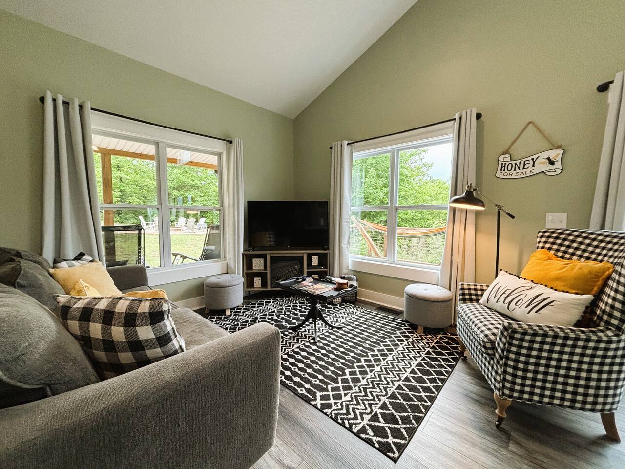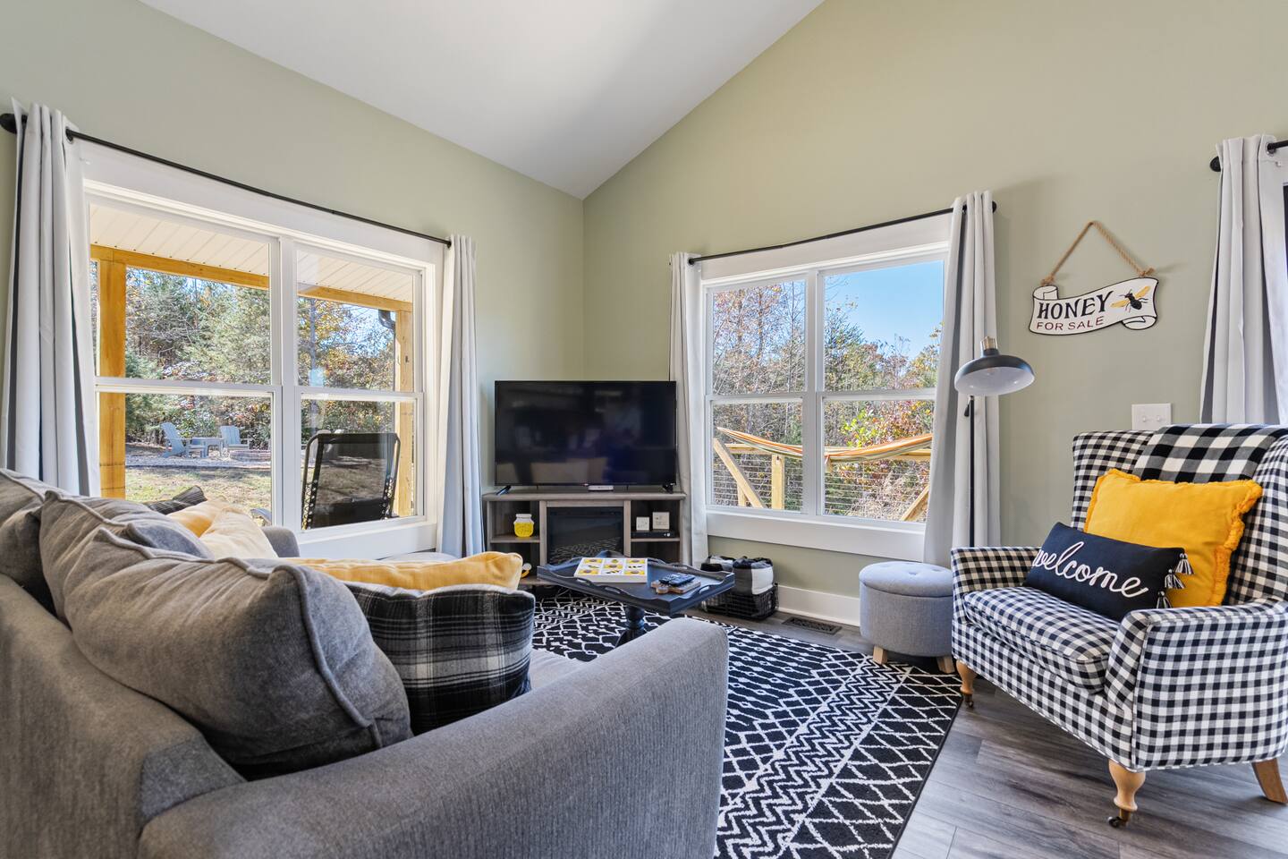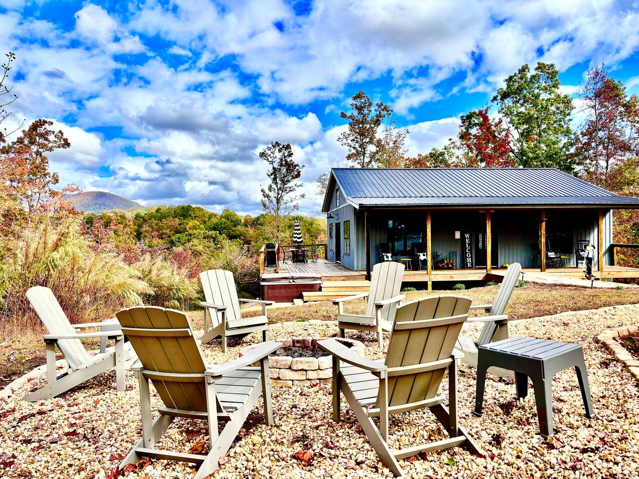 The Honey Bee! Escape to this cozy 2BR, 2BA cabin on 30 acres in the North Georgia mountains. Enjoy breathtaking Cedar Mountain views with amenities like a hot tub, fire pit, hammocks, and a private hiking trail. Unwind on the deck or covered porch, perfect for dining and BBQs. Inside, find a fully stocked kitchen, king beds, a cozy living room and Smart TV’s with free Wi-Fi. Close to wineries, hiking, tubing, and historic Dahlonega, this is your perfect getaway for adventure and relaxation!