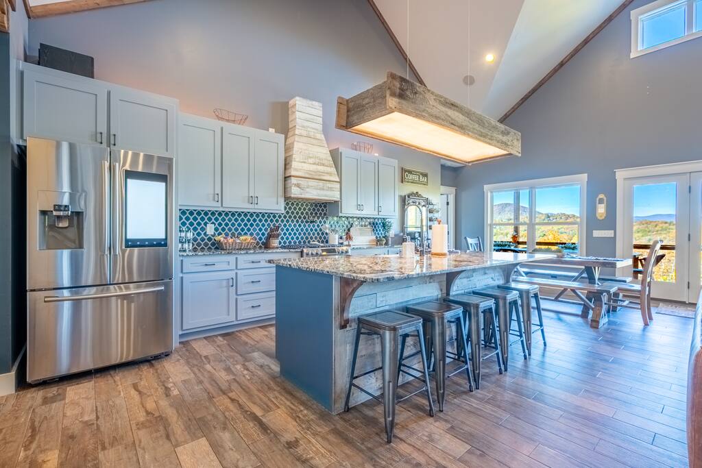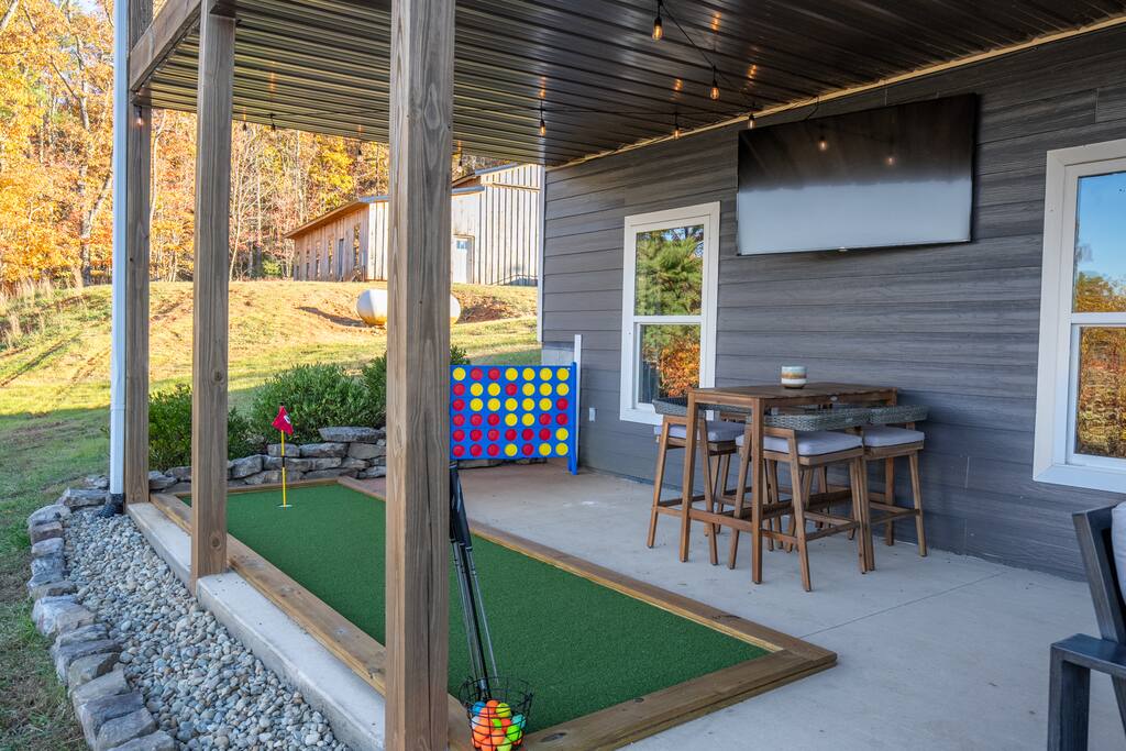 🛏️ The Space This spacious, multi-level home offers comfort, style, and entertainment at every turn. From mountain vistas to cozy indoor features, you’ll feel right at home. Highlights: • 🏔️ Stunning mountain views • 🏊♀️ Private pool with lounge seating (open May through September) • 🔥 Outdoor fire pit with seating area • 🛁 Relaxing hot tub • 🎬 Private movie room with theater-style seating • 🕹️ Fun-filled game room with games for all ages • ⛳ Private golf putting green • 🪵 Cozy indoor fireplace • 🍳 Fully stocked kitchen (main level) • 🥂 Convenient kitchenette (lower level) ⸻ 🛌 Sleeping Arrangements Comfortably sleeps multiple guests with thoughtfully furnished bedrooms and flexible spaces. (Add exact number of beds/bedrooms here if you’d like.) ⸻ 🍽️ Cooking & Dining • Main-level kitchen fully equipped with cookware, dishes, spices, coffee maker & more • Lower-level kitchenette perfect for snacks, drinks, or additional meal prep • Indoor & outdoor dining areas ⸻ 📍 Location Tucked away in a peaceful mountain setting, yet close to local attractions, hiking trails, dining, and more. A perfect balance of seclusion and convenience. ⸻ ✅ What You’ll Love • Fast Wi-Fi for work or streaming • Multiple entertainment zones for all ages • Ideal for families, friends, or multi-generational stays • Luxury feel with all the comforts of home ⸻ 🗓️ Book your stay today and experience mountain living at its finest!